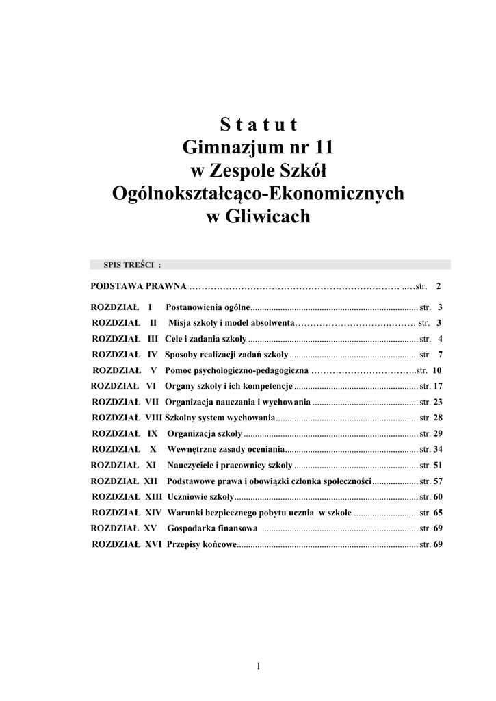 S t a t u t Gimnazjum nr 11 w Zespole Szkół Ogólnokształcąco