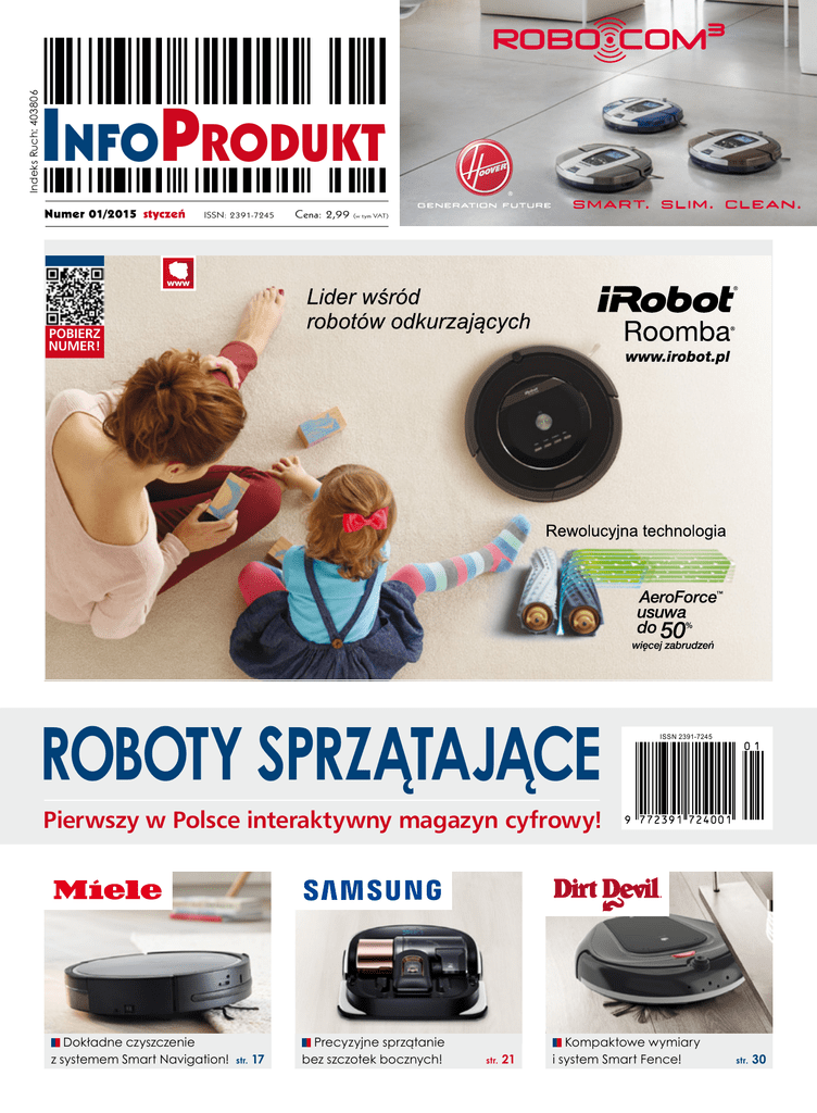 Indeks Ruch: 403806 Infoprodukt Numer 01/2015 styczeń ISSN: 2391-7245 Cena: 2,99 (w tym VAT) Pobierz numer! Roboty sprzątające ISSN 2391-7245 Pierwszy w Polsce interaktywny magazyn cyfrowy! Dokładne czyszczenie z systemem Smart Navigation! str. 17 Precyzyjne sprzątanie bez szczotek bocznych! str. 21 Kompaktowe wymiary i system Smart Fence! str. 30 RoboCom 3 – zarządzaj Twoim robotem za pomocą smartfona! Robo.com³ RBC090 to pierwszy na rynku odkurzacz-robot, wykorzystujący zaawansowany inteligentny algorytm skanujący Hoover.AAI™. Dzięki niemu odkurzacz w szybki i bezbłędny sposób określa najlepszą ścieżkę efektywnego czyszczenia domu. Robo.com³ komunikuje się z użytkownikiem dzięki technologii Infovoice – miły głos poprowadzi właściciela nie tylko przez pierwsze ustawienia, ale i pomoże w codziennej jego obsłudze. RBC090 wyposażony jest w dwa wyświetlacze oraz nowatorską aplikację łączności bezprzewodowej, dzięki której poza tradycyjną obsługą możliwe jest sterowanie odkurzaczem za pomocą smartfona lub tabletu. Robo. com³ ma zaledwie 68 mm wysokości i posiada baterię litową nowej generacji (aktywność do 120 minut!), dzięki czemu posprząta cały dom w najbardziej nawet ukrytych zakamarkach. youtube.com/hoovereurope www.hoover.pl Roboty sprzątające od redakcji... Innowacja światowa Made in Poland! Oddajemy w Państwa ręce pierwszy na rynku w pełni interaktywny magazyn cyfrowy. To nie tylko polska, ale i światowa nowość. Wiele jest wydań, które możemy ściągnąć na tablet bądź smartfon. Nasz koncept idzie jednak o wiele dalej i przełamuje wszelkie dzisiejsze standardy – zarówno te systemowe, jak i te związane z komunikacją i wykorzystaniem czasopism jako źródła nowoczesnej i zarazem wielostrumieniowej informacji. I to jest „eureka”, bo programy, systemy czy dostęp do Internetu ma każdy, ale liczy się sposób, w jaki elementy te można połączyć i wykorzystać. To trochę tak jak z kołem, które w przyrodzie w obrysie drzewa istniało od zawsze. Kwestią było jedynie jego pierwsze potoczenie. Nam się chyba udało i już nie chyba, a na Roboty sprzątające pewno będziemy szybko i przez wszystkich naśladowani. Nasz magazyn mogą Państwo czytać w klasycznej formie, przenieść na dowolne medium elektroniczne albo wydrukować własną wersję na domowej drukarce. „InfoProdukt 1.0” to także ważna innowacja w podejściu do wielu utrudniających życie systemów informatycznych. Nasz periodyk działa na wszystkich komputerach, laptopach i telefonach – nieważne, jakiej marki i na jakiej aplikacji. Nie komplikujemy tu niepotrzebnie sprawy. Dzięki temu nasz „program-gazetę” można przenosić do dowolnego środowiska. Co godne podkreślenia, może on stać się częścią platformy edukacyjnej, programu do benchmarkingu czy aplikacji działających w obszarze cenówek lub ścieżek do e-learningu. Jednym słowem: innowacja światowa, choć nas najbardziej cieszy fakt, że jest to produkt „Made in Poland”, powstały w małej dziennikarskiej rodzinie. Warto na koniec dodać, że uniwersalna forma przekazu umożliwia wykorzystanie periodyku zarówno w kanale handlowym, konsumenckim, jak i w sektorze edukacji. Dzięki nowoczesnym rozwiązaniom istnieją w zasadzie nieograniczone możliwości wykorzystania wszelkiego typu informacji przy jego budowie – zdjęć, filmów, schematów, prezentacji, cenników, instrukcji, aplikacji, programów, gier… Życzymy przyjemnej lektury i w pełni mobilnych, cyfrowych doznań. Iza Piętka [email protected] 4 (a jeszcze do niedawna niezgodność towaru z umową) W odniesieniu do aspektów prawnych na rynku bardzo często używane są niezrozumiałe określenia, nazwy czy definicje. Warto wiedzieć, że w Polsce funkcjonuje naprawdę dobre, efektywne prawo konsumenckie. To jego nieznajomość i brak wiedzy praktycznej sprawiają, że postrzegamy je na co dzień zgoła odmiennie. Inaczej bowiem odniesiemy się, kiedy ktoś (sprzedawca czy klient) mówi o gwarancji, a inaczej, kiedy użyje zwrotu „gwarancja normatywna”. Oczywiście, wszelkie przedrostki czy dopełnienia, i w ogóle zabawa słowem prawnym, ma na celu zwykle wzrost prestiżu i próbę postawienia się „ponad” innymi czy ponad prawem. Tymczasem pamiętajmy, że litera prawa jest tylko jedna i nakłada określone prawa i obowiązki zarówno na konsumenta, jak i sprzedawcę. Rodzaj i tryb transakcji (na odległość przez Intermet, na firmę) jest zagadnieniem drugoplanowym. Pamiętaj: § z umową sprzedaży, a więc ze wszelkiego rodzaju reklamacjami, które miały miejsce do 24 grudnia 2014 roku, wiążą się trzy instytucje prawne. Są nimi: obowiązek zgodności towaru z umową, rękojmia oraz gwarancja; § do transakcji i umów, które miały miejsce po 24 grudnia 2014 roku, stosuje się już tylko dwie instytucje prawne. Są nimi rękojmia oraz gwarancja, przy czym rękojmia dla przedsiębiorców jest inna od rękojmi dla konsumentów; Dlaczego my? Przede wszystkim dlatego, że „InfoProdukt” (Grupa iMEs) zrzesza ponad 50 najlepszych w kraju fachowców i dziennikarzy zajmujących się tematyką sprzętu elektrycznego i elektronicznego. Działamy nieprzerwanie na rynku medialnym, informacyjnym i szkoleniowym od 20 lat i we wszystkich niemal jego kanałach – a na pewno wszystkich najważniejszych – prasie, radio, telewizji i Internecie. Byliśmy nie tylko twórcami pierwszego w Polsce czasopisma dla branży AGD-RTV, ale i e-marketplace (1998 rok, kiedy WWW raczkowało…). Opracowaliśmy i wykonaliśmy też pierwsze w Polsce fachowe testy (dziś testy to parodia). To do nas też należy największy w Polsce magazyn handlowy „InfoMarket”, a przy okazji jesteśmy też czołowym dostawcą treści i informacji dla większości sieci handlowych i sklepów w Polsce (e-kontent). Wiele z nich także szkolimy. Gwarancja i rękojmia Oczywiście, nie jesteśmy najlepsi i najmądrzej