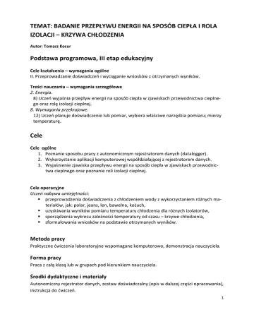 BADANIE PRZEPŁYWU ENERGII NA SPOSÓB CIEPŁA I