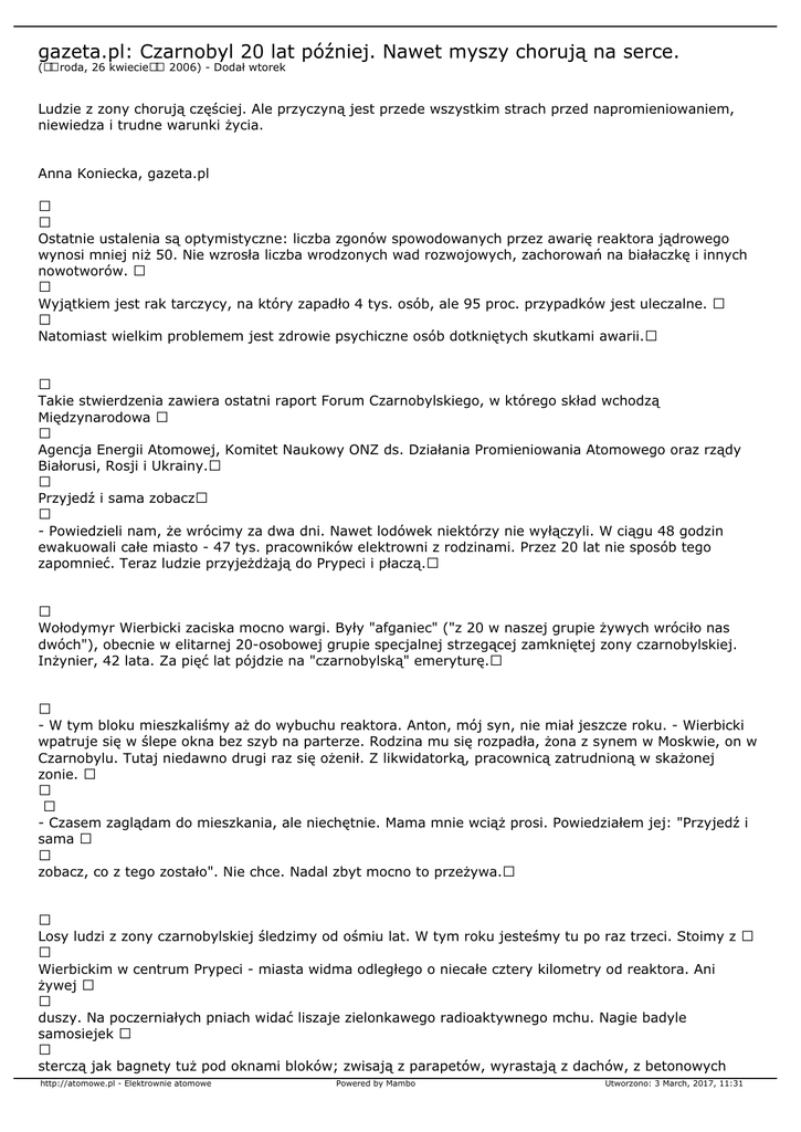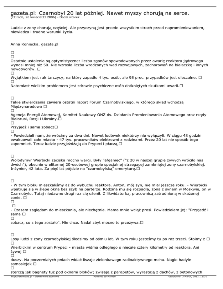 gazeta.pl: Czarnobyl 20 lat później. Nawet myszy chorują na serce.