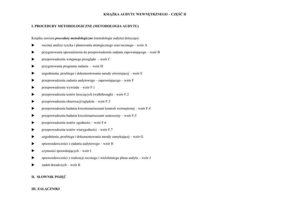KSIĄŻKA AUDYTU WEWNĘTRZNEGO – CZĘŚĆ II I. PROCEDURY