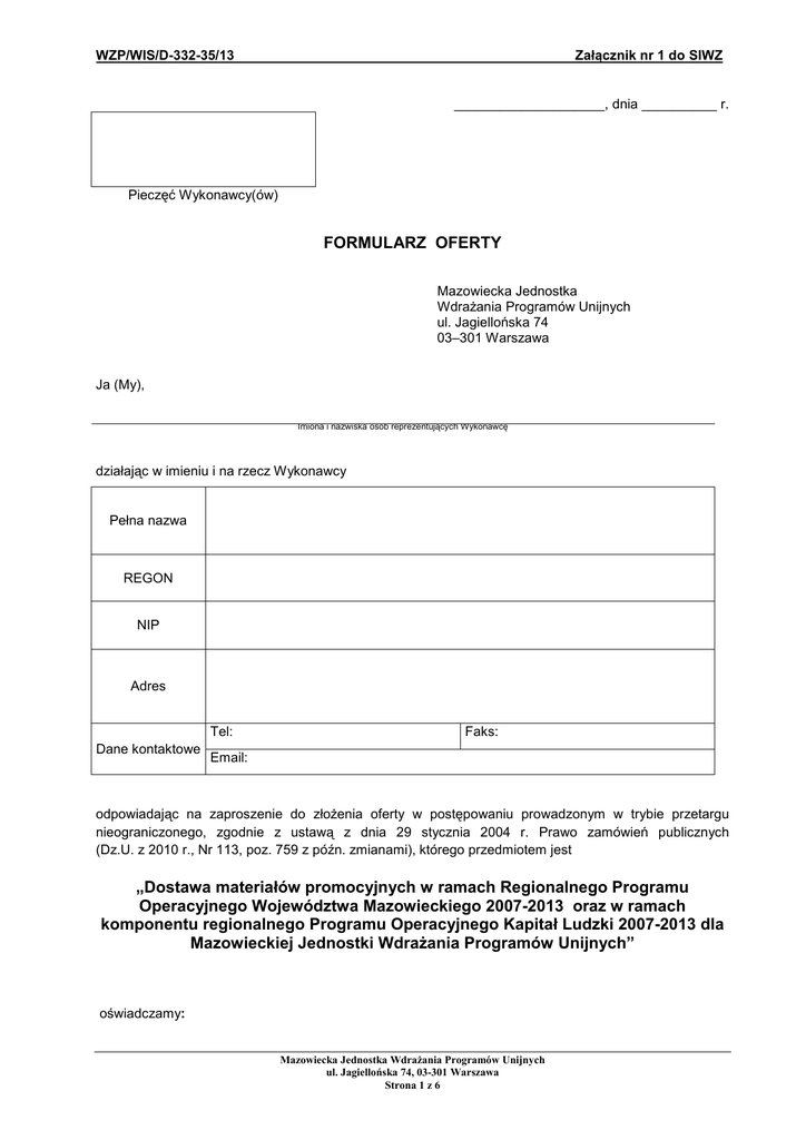Formularz oferty - Mazowiecka Jednostka Wdrażania Programów