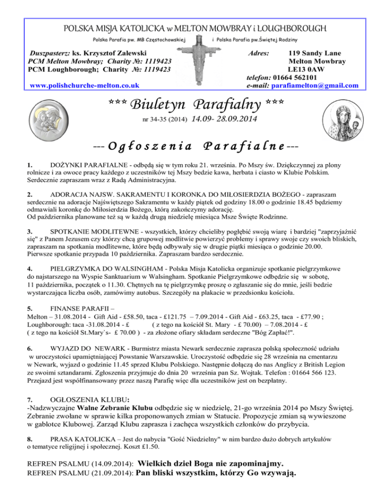 Biuletyn Parafialny - Polska Wspólnota Katolicka w Melton Mowbray