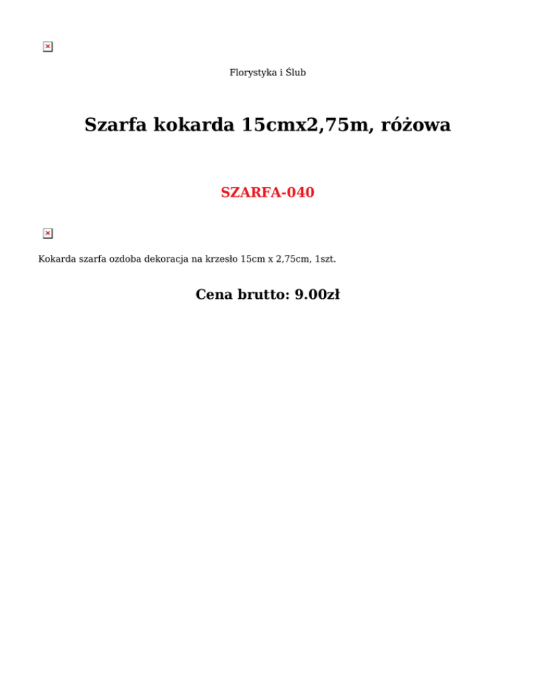 Florystyka i Ślub Szarfa kokarda 15cmx2,75m, różowa SZARFA-040 Kokarda szarfa ozdoba dekoracja na krzesło 15cm x 2,75cm, 1szt. Cena brutto: 9.00zł