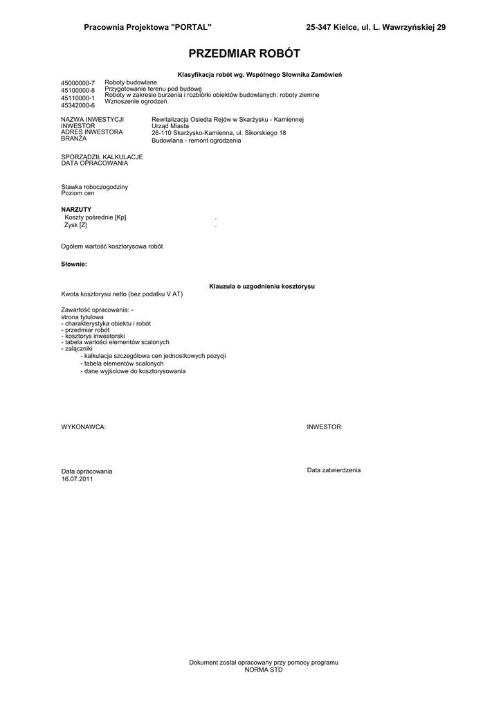 przedmiar robót - Urząd Miasta Skarżysko
