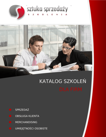 KATALOG SZKOLEŃ DLA FIRM 1 SPRZEDAŻ OBSŁUGA KLIENTA MERCHANDISING UMIEJĘTNOŚCI OSOBISTE www.sztuka-sprzedazy.pl Propozycja szkoleń Szanowni Państwo, Oddaję w Państwa ręce propozycje szkoleń, które poprowadzę dla Państwa firmy z uwzględnieniem jej potrzeb oraz specyfiki działalności. Katalog szkoleń został podzielony na 4 obszary tematyczne: SPRZEDAŻ str. 4 OBSŁUGA KLIENTA MERCHANDISING str.13 str.17 UMIEJĘTNOŚCI OSOBISTE str.20 Zakres merytoryczny zawarte są na następnych stronach. Zapraszam również na stronę internetową: www.sztuka-sprzedazy.pl, na której znajdują się dodatkowe informacje na temat formy prowadzonych zajęć, zasad współpracy i mojego doświadczenia trenerskiego. Agata Słowińska Z wyrazami szacunku, Trener Sprzedaży i Rozwoju Osobistego Tel. + 48 723 233 599 E-mail: [email protected] www.sztuka-sprzedazy.pl 2 www.sztuka-sprzedazy.pl Obszary i tematy szkoleń w pigułce SPRZEDAŻ Prospecting – efektywne metody pozyskiwanie klientów 5 Telemarketing dla handlowców 6 Prowadzenie rozmów handlowych .Techniki sprzedaży transakcyjnej 7 Prowadzenie spotkań biznesowych. Techniki sprzedaży doradczej 8 Gry handlowe i pokonywanie obiekcji klientów 9 Zwiększanie sprzedaży poprzez rozwój relacji z klientami 10 Psychologia sprzedaży 11 Efektywność pracy handlowca 12 OBSŁUGA KLIENTA Profesjonalna obsługa klienta 14 Telefoniczna obsługa klienta 15 Obsługa trudnych i wymagających klientów 16 MERCHANDISING Merchandising – skuteczna ekspozycja towaru 18 Merchandising dla handlowców z elementami sprzedaży 19 UMIEJĘTNOŚCI OSOBISTE Trening asertywności i radzenie sobie z różnymi typami ludźmi Autoprezentacja w biznesie 22 Efektywna komunikacja w pracy 23 Planowanie zadań i organizacja czasu pracy 24 3 www.sztuka-sprzedazy.pl 21 Obszar 1: SPRZEDAŻ Szkolenia w obszarze SPRZEDAŻY: Prospecting – efektywne metody pozyskiwanie klientów Telemarketing dla handlowców 5 6 Prowadzenie rozmów handlowych .Techniki sprzedaży transakcyjnej 7 Prowadzenie spotkań biznesowych. Techniki sprzedaży doradczej Gry handlowe i pokonywanie obiekcji klientów 9 Zwiększanie sprzedaży poprzez rozwój relacji z klientami Psychologia sprzedaży 11 Efektywność pracy handlowca 4 10 12 www.sztuka-sprzedazy.pl 8 Obszar SPRZEDAŻY Prospecting – efektywne metody pozyskiwania klientów Adresaci szkolenia Szkolenie dedykowane jest dla: Osób odpowiedzialnych bezpośrednio za rozwój sprzedaży w firmie Doradców handlowych, konsultantów działających w branży usługowej Przedstawicieli handlowych odpowiedzialnych za budowanie bazy nowych klientów i sprzedaż produktów/usług obecnym klientom Kompetencje, które rozwinie Uczestnik szkolenia Dzięki szkoleniu uczestnik pozna sposoby, narzędzia i techniki, które pozwolą: Poprawić organizację własnych działań zmierzających do osiągania celów sprzedażowych w krótkim i długim okresie Docierać do klientów, którzy będą zainteresowani rozwiązaniami firmy Zarządzać własną bazą klientów w sposób efektywny Osiągnąć większą skuteczność w docieraniu do osób decyzyjnych Zaplanować produktywny system prospectingowy, Przezwyciężyć własne bariery psychologiczne w pozyskiwaniu nowych klientów. Zakres tematyczny szkolenia Program szkolenia zawiera następujące zagadnienia: Wprowadzenie do prospectingu Cele sprzedażowe a strategia firmy Profil potencjalnego klienta Źródła poszukiwania klientów Metody dotarcia do osób decyzyjnych Efektywny plan działania handlowca Techniki przyspieszające finalizację sprzedaży Zarządzanie bazą klientów Proponowany czas trwania szkolenia 8 godzin 5 www.sztuka-sprzedazy.pl Obszar SPRZEDAŻY Telemarketing dla handlowców Adresaci szkolenia Szkolenie dedykowane jest dla: Osób odpowiedzialnych za kontakt telefoniczny z klientem Przedstawicieli handlowych umawiających spotkania przez telefon Pracowników call center Stacjonarnych doradców handlowych Kompetencje, które rozwinie uczestnik szkolenia Dzięki szkoleniu uczestnik pozna sposoby, narzędzia i techniki, które pozwolą: Przezwyciężyć własne bariery psychologiczne w komunikacji przez telefon Osiągnąć wyższą efektywność w docieraniu do osób decyzyjnych i w umawianiu spotkań przez telefon Uzyskać większą skuteczność w radzeniu sobie z wątpliwościami i obiekcjami klientów Poprawić koncentrację na działaniach przynoszących określony rezultat Stworzyć profesjonalny wizerunek firmy w trakcie rozmów telefonicznych Zakres tematyczny szkolenia Program szkolenia zawiera następujące zagadnienia: Rodzaje telemarketingu w pracy handlowca Przełamywanie barier psychologicznych w telemarketingu Zasady komunikacji przez telefon – tworzenie wizerunku profesjonalisty Struktura telefonicznej rozmowy handlowej Techniki prowadzenia rozmów telefonicznych Telefoniczne gry handlowe Umawianie spotkań przez telefon Proponowany czas trwania szkolenia 8 – 16 godzin 6 www.sztuka-sprzedazy.pl Obszar SPRZEDAŻY Prowadzenie rozmów handlowych. Techniki sprzedaży transakcyjnej Adresaci szkolenia Szkolenie dedykowane jest dla: Pracowników zaangażowanych w sprzedaż i obsługę klientów Przedstawicieli Handlowych odpowiedzialnych za sprzedaż produktów Doradców Handlowych stacjonarnych i pracujących w terenie Kompetencje, które rozwinie Uczestnik szkolenia Dzięki szkoleniu uczestnik pozna sposoby, narzędzia i techniki, które pozwolą: Poprawić skuteczność prowadzonych rozmów handlowych Zidentyfikować szybciej potrzeby klienta w oparciu o techniki aktywnego słuchania Dokonywać przekonującą prezentację oferty Rozpoznać i przezwyciężyć obiekcje handlowe klientów i szybciej przejść do zamknięcia sprzedaży Przyśpieszyć proces sprzedaży poprzez wyciąganie wniosków z własnych doświadczeń Zakres tematyczny szkolenia Program szkolenia zawiera następujące zagadnienia: Czynniki sukcesu w sprzedaży Psychologia zachowań klientów Proces sprzeda