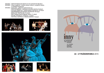 KROSNO - NIEPOWTARZALNE MIASTO W WYJĄTKOWYM MIEJSCU KROSNO - miasto wyjątkowo życzliwe młodym ludziom i przyjaźnie otwarte na działania artystyczne. KROSNO - kocha teatr - cyklicznie organizowane są: - TEATR NA BRUKU - wakacyjne warsztaty teatralne /8 edycji/ - PUCHAR UŚMIECHU - festiwal teatrów dziecięcych /32 edycji/ - KROŚNIEŃSKIE SPOTKANIA TEATRALNE /36 edycji/ - MIKOLAJKI TEATRALNE /15 edycji/ - INNY Festiwal Teatrów Młodzieżowych /11 edycji/ - NOCNE TEATRALIA „STRACHY” /7 edycji/ - FESTIWAL INSPIRACJI FREDROWSKICH /1edycja/ 14 - 17 PAŹDZIERNIKA 2015 I. ZASADY UCZESTNICTWA 1. W festiwalu uczestniczą młodzieżowe zespoły teatralne działające przy szkołach, ośrodkach/domach kultury, stowarzyszeniach, innych instytucjach, a także grupy niezinstytucjonalizowane /z całego kraju /. 2. Prezentowane przedstawienia powinny mieścić się w przedziale czasowym 25 - 60 minut, nie ogranicza się kategorii, formy i konwencji teatralnej - organizatorzy przyjmują otwartą formułę artystyczną. Przedstawienia mogą być oparte o wszelkie istniejące formy wypowiedzi teatralnej. 3. Podstawą zgłoszenia jest nadesłanie do dnia 21 września 2015 roku zapisu spektaklu na płycie DVD /plan ogólny bez zbliżeń i montażu/ oraz wypełnionej czytelnie karty zgłoszenia, a także obowiązkowo materiałów reklamowych /informacja o zespole i spektaklu oraz zdjęcie/ na adres: REGIONALNE CENTRUM KULTUR POGRANICZA 38 - 400 Krosno ul. Kolejowa 1. z dopiskiem „ INNY” tel. 013 43 218 98, fax : 013 43 215 71 e-mail: [email protected], www.rckp. krosno.pl 2. Organizatorzy zastrzegają sobie prawo do rejestracji spektakli konkursowych na dowolnym nośniku na potrzeby własne i umieszczenie na swoich stronach internetowych, a także przez media. Uczestnicy udzielają nieodpłatnie praw do rejestracji telewizyjnej i radiowej oraz do publikacji i prezentacji. 3. Opiekunowie przedstawiają organizatorom polisy ubezpieczeniowe stwierdzające ubezpieczenie uczestników i osób towarzyszących na okres pobytu i podróży. 4. Zespoły uczestniczą w programie zaproponowanym przez organizatorów. 5. Organizatorzy zapewniają: - wyżywienie i noclegi - warunki sceniczne i obsługę techniczną - zajęcia warsztatowe dla instruktorów i uczestników - imprezy towarzyszące - UWAGA nie zapewnia się elementów scenograficznych III. JURY i NAGRODY 1. Przedstawienia oceniać będzie profesjonalne jury powołane przez organizatorów. 4. Komisja Artystyczna powołana przez organizatorów dokona kwalifikacji spektakli zgłoszonych do konkursu. O decyzji Komisji organizatorzy powiadomią zespoły pisemnie do dnia 25 września 2015 roku. 5. Zaproszone teatry mają obowiązek przesłać do 5 października 2015 roku oficjalne potwierdzenie uczestnictwa. II. ZASADY ORGANIZACYJNE 1. Koszt pobytu zespołu: Instytucja zgłaszająca pokrywa koszty akredytacji 120 zł od osoby za trzy dni festiwalu na konto: BANK PEKAO S.A. I ODZIAŁ W KROŚNIE 38 1240 2311 1111 0010 6149 9002 /Powyższa kwota pokrywa zaledwie części kosztów pobytu teatru w festiwalu, w związku z czym nie są możliwe negocjacje na temat wysokości akredytacji, pozostałe kwoty pokrywają organizatorzy. Zakwalifikowane zespoły zapraszamy na wszystkie dni festiwalu/ - w przypadku wycofania się zespołu z konkursu lub zmiany ilości osób pierwotnie opłaconych, należy poinformować organizatorów do dnia 5 października 2015 r., w przeciwnym wypadku organizatorzy nie zwracają wpłaconej akredytacji. 2. Przewidziane są nagrody: ZŁOTA, SREBRNA i BRĄZOWA OTWARTA KURTYNA o charakterze pieniężnym oraz nagrody indywidualne. 3. Ogólna pula nagród wynosi 6.000 złotych. Laureaci otrzymują nagrody finansowe. 4. Jury przy ocenie spektakli konkursowych uwzględniać będzie: - spełnienie założeń ideowych festiwalu, - inscenizację, - walory artystyczne spektaklu, - kreacje aktorskie, - szczerość wypowiedzi - nowatorstwo wypowiedzi scenicznej 5. O ostatecznym podziale nagród decyduje Jury. Gwarantujemy zespołom pomoc organizacyjno-techniczną. W sprawach nieobjętych regulaminem decyduje organizator mając na uwadze potrzeby uczestników i inne obiektywne czynniki. Decyzja organizatora jest niepodważalna. inny 12 FESTIWAL TEATRÓW MŁODZIEŻOWYCH Miejsce................................................ dn. ......................................... Zobowiązujemy się do wpłacenia akredytacji w terminie i wysokości przewidzianych w regulaminie festiwalu. Organizator wystawia fakturę za kwotę akredytacji dla: /wypełnić czytelnie/ Nazwa instytucji-płatnika ……………………………………………………………………. …………………………………………………………………………………………………….. …………………………………………………………………………………………………….. Dokładny adres płatnika ……………………………………………………………………... …………………………………………………………………………………………………….. …………………………………………………………………………………………………….. NIP płatnika …………………………………………………………………………………….. Główny księgowy instytucji delegującej (pieczątka i podpis) Dyrektor instytucji (pieczątka i podpis) Nazwa teatru .................................................................................................................... Instytucja delegująca........................................................................................................ .......................................................................................................................................... Dokładny adres.........................................................................................................