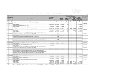 Załącznik Nr 3 do uchwały Nr IX/34/2015 Rady Gminy Solec-Zdrój z dnia 3 czerwca 2015 roku Limity wydatków na wieloletnie przedsięwzięcia planowane do poniesienia w 2015 roku Lp Dzia Rozdz . ł . 1 2 Nazwa przedsięwzięcia Łączne nakłady finansowe 4 5 3 1. 600 60016 7 Urząd Gminy 25 000 000,00 5 000 000,00 750 000,00 750 000,00 30 000,00 11 100,00 Instalacja systemów energii odnawialnej na budynkach użyteczności publicznej oraz domach prywatnych w gminach powiatu buskiego i pińczowskiego 2009 - 2015 1 539 822,80 1 282 876,65 382 189,13 0,00 wydatki bieżące wydatki majątkowe 50 998,83 1 488 823,97 39 968,96 1 242 907,69 0,00 382 189,13 0,00 0,00 394 290,00 377 070,00 225 570,00 0,00 310 000,00 183 469,21 85 000,00 52 600,00 0,00 8 274,19 wydatki majątkowe 4 250 000,00 18 900,00 0,00 16 088,64 884 598,88 16 088,64 0,00 23 880,32 860 718,56 0,00 "e-świętokrzyskie - Rozbudowa infrastruktury informatycznej JST 2010 - 2015" wydatki majątkowe "e-świętokrzyskie - Budowa systemu informacji przestrzennej Województwa Świętokrzyskiego 2011 6. 720 72095 2015" wydatki majątkowe Budowa świetlicy wraz z zagospodarowaniem terenu w m. Zagaje Kikowskie 7. 921 92109 wydatki majątkowe Przebudowa ujęć wody i sieci wodociagowej 2014 - 2016 8. 400 40002 wydatki majątkowe 0,00 Urząd Gminy 151 500,00 0,00 Urząd Gminy 40 670,13 142 799,08 15 040,00 37 560,00 8 274,19 0,00 0,00 50 000,00 Urząd Gminy 10. 853 85395 Ogółem X uwaga: Urząd Gminy 12 000 000,00 120 000,00 18 000,00 102 000,00 Aktywizacja społeczno-zawodowa bezrobotnych w Gminie Solec-Zdrój - Wzrost aktywności zawodowej, społecznej i edukacyjnej u 15 osób. Podniesienie kwalifikacji zawodowych i kompetencji społecznych, zwiększenie umiejętności aktywnego poruszania się po rynku pracy 2008 -2015 wydatki bieżące Modernizacja oświetlenia ulicznego na terenie Gminy 2015-2017 wydatki majątkowe Budowa ścieżek turystyczno - edukacyjnych 12. 926 92695 wydatki majątkowe Poprawa efektywności energetycznej budynków użyteczności publicznej 13. 900 90005 wydatki majątkowe wydatki bieżące wydatki majątkowe 11. 900 90015 Urząd Gminy Urząd Gminy 50 000,00 Uporządkowanie gospodarki wodno-ściekowej na terenie Gminy Solec-Zdrój - ochrona środowiska 9. 900 90001 naturalnego będącego bogactwem gminy uzdrowiskowej 2015 - 2018 wydatki majątkowe Urząd Gminy Urząd Gminy Budowa sieci wodociągowej wraz z niezbędną infrastrukturą umożliwiającą doprowadzenie wody z 4. 010 01010 ujęcia Kików do m. Sułkowice - zabezpieczenie w wodę 2011 - 2015 5. 720 72095 6 dochody własne jst Rewitalizacja przestrzeni publicznej miejscowości Solec-Zdrój 2015 - 2017 wydatki majątkowe Modernizacja sieci dróg gminnych 2015 - 2017 2. 600 60016 wydatki majątkowe 3. 900 90005 rok budżetowy 2015 (8+9+10+11) w złotych Planowane wydatki Jednostka org. w tym źródła finansowania realizująca w tym: dotacje i środki zadanie lub kredyty kredyty i wymienione środki pożyczki i pożyczki zaciągnięte pochodzące w art. 5 ust. 1 koordynująca program z innych pkt 2 i 3 u.f.p. na 8 8a 9 10 12 GOPS 738 443,11 76 920,65 7 907,97 883 280,00 80 000,00 12 000,00 610 000,00 10 000,00 10 000,00 0,00 3 389,13 65 623,55 68 000,00 2 045 000,00 45 000,00 45 000,00 789 441,94 116 889,61 7 907,97 0,00 0,00 19 477,77 89 503,87 43 666 393,97 7 149 321,09 1 517 843,45 0,00 0,00 0,00 5 631 477,64 44 455 835,91 7 266 210,70 1 525 751,42 0,00 0,00 19 477,77 5 720 981,51 W kwocie 5 720 981,51 wydatków majątkowych z kol. 10 mieści się kwota 884 598,88 złotych, 151 500 złotych, 18 900 złotych, 102 000 złotych stanowiąca refundację poniesionych wydatków majątkowych. Urząd Gminy Urząd Gminy Urząd Gminy x