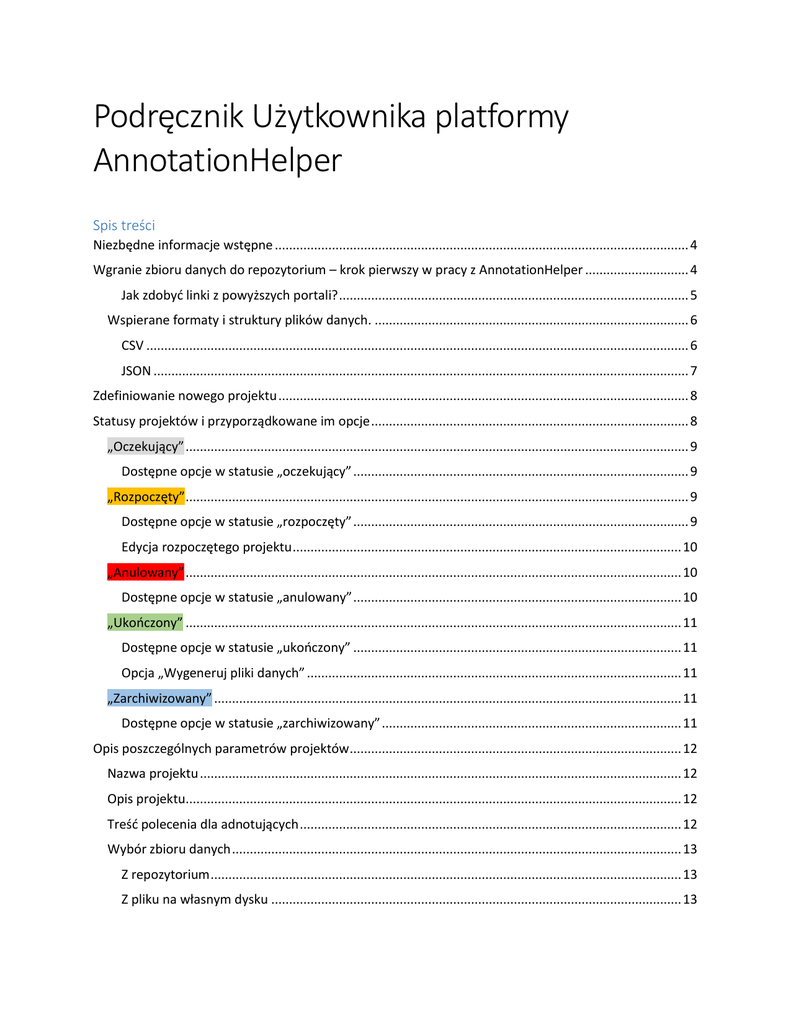 Podręcznik Użytkownika platformy Annotation Helper v1.2