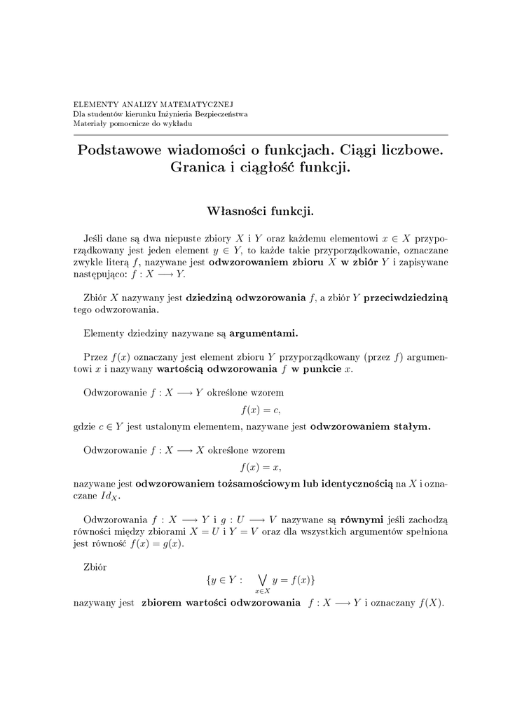 Podstawowe wiadomo±ci o funkcjach. Ci¡gi liczbowe.