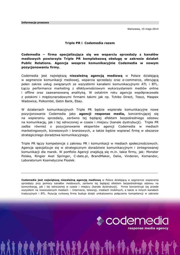 Triple PR i Codemedia razem Codemedia – firma specjalizująca się