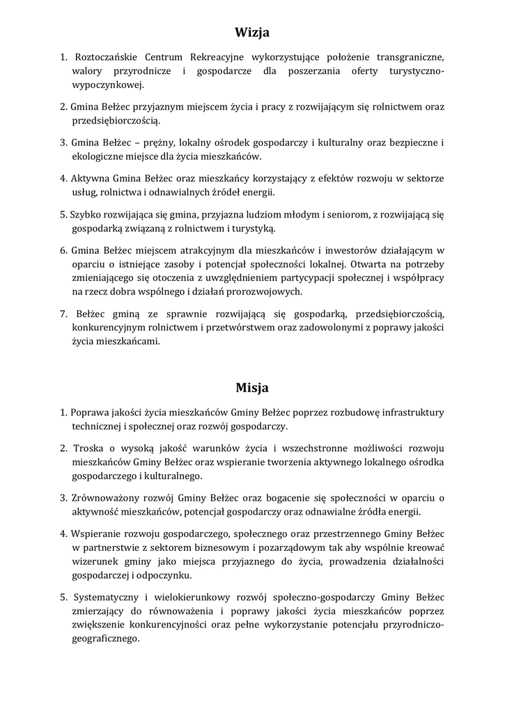 Wizja Misja - Gmina Bełżec