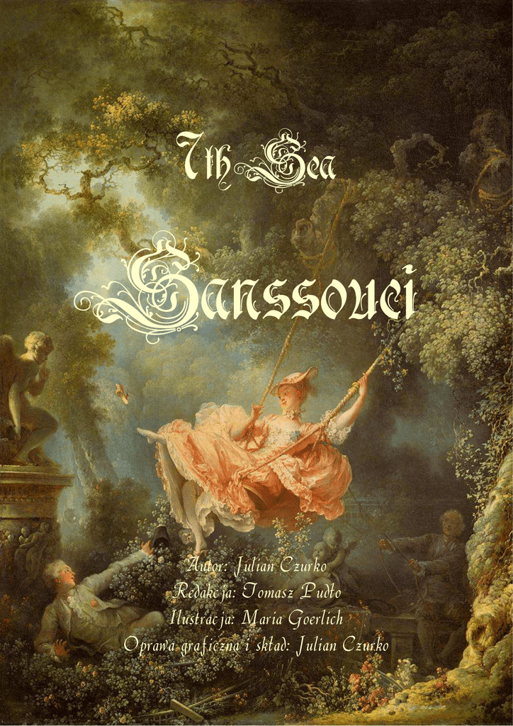 7th Sea Sanssouci Autor: Julian Czurko Redakcja: Tomasz Pudło Ilustracja: Maria Goerlich Oprawa graficzna i skład: Julian Czurko 7th Sea Sanssouci anssouci Żaden naród Thei nie doprowadził miłości do takiego wysublimowania, jak uczynili to Monteńczycy. W blasku Króla Słońce każde uczucie mieni się tysiącem refleksów i odcieni, niczym drogocenny klejnot. Rozpoznawanie najmniejszych drgnień w relacjach między ludźmi wpływa na całą kulturę dworską Montaigne, która rządzi się zasadami trudnymi do ogarnięcia dla większości obcokrajowców. W grze rozgrywanej wśród furkotu wachlarzy, obłoków złotego pudru i powłóczystych spojrzeń narzędziem jest słodka mowa, stawką – ośmieszenie, a celem miłość – kochanka, towarzystwa czy samego l’Empereura. W centrum życia monteńskich arystokratów znajdują się miłostki, które często są jedynym, co pozostało gołębiowłosym ozdobom salonów, schwytanym przez szalonego władcę do Złotej Klatki, jaką stał się Château du Soleil. Romans stał się zatem głównym zajęciem dworzan, czego przyczyną z jednej strony jest niezwykła kultura afektów, a z drugiej dojmująca nuda i zagrożenie ze strony nieprzewidywalnego władcy, pchające ku zawieraniu intymnych sojuszy. Choć "największymi kochankami" tradycyjnie określa się Vodaccian, to Monteńczycy uczynili z romansu prawdziwą sztukę. Ten sąd można dodatkowo uzasadnić tym, że gry miłosne odbijają się w monteńskiej poezji, malarstwie i muzyce. Nawet ogrodnictwo dostosowało się do stylu życia arystokratów. Choć z żywopłotowego labiryntu nie można łatwo wyjść, tak jak nie można wydostać się z aksamitnego uścisku Imperatora, to znaleźć tam można setki ustronnych miejsc, oferujących schronienie kochankom. Osobami, które wiedzą o dworskiej miłości najwięcej, są z pewnością arystokraci z zamku Sanssouci, którzy cieszą się niespotykaną niezależnością od oślepiającego blaskiem króla. Jest to zasługa długiej tradycji tego dworu, który wychował najpiękniejszych kochanków i najbłyskotliwszych uwodzicieli Montaigne. Młodzi dworzanie dorastają tu pod krytycznym okiem Léonore Lévèque de l'Aury, która każdego roku wyprawia dla swoich podopiecznych Bal Debiutantów. Wielu ludzi patrzy na Sanssouci bardziej jak na szkołę czy ekskluzywne stowarzyszenie, co odpowiada sposobowi, w jaki wielka patronka patrzy na swój dwór. 2 Sanssouci Historia „Sans souci” dosłownie oznacza „bez zmartwień” lub – bardziej poetycko, a i bliżej właściwego sensu – „Słodkie Zapomnienie”. Dzieje dworu sięgają głęboko w historię Montaigne i związane są z rodziną Lévèque, kojarzoną zazwyczaj z wielkimi strategami i rozgrywanymi przez nich słynnymi bitwami. Jednym z największych sukcesów rodu, którym zaskarbił on sobie wielowiekową przyjaźń ze strony Korony, było spektakularne zwycięstwo, jakie rodzina odniosła podczas inwazji na Avalon. Niewielu wie, że ci z Lévèque, którzy postawili stopy na Wyspach Przecudnych, nie wrócili do ojczyzny tacy sami. Ludzie powiadają, że dzielni monteńscy żołnierze okazali się wyjątkowo odporni na uroki mieszkańców wysp. Było jednak dokładnie na odwrót – magia Sidhe wycisnęła na nich swe piętno, częstokroć widoczne aż do dzisiaj. Lévèque przywieźli do Montaigne jedną pamiątkę: opowieści. Choć Glamour odszedł z Wysp, ludzie wciąż opowiadali sobie romanse o rycerzach i ich damach, czym wypełniali nudę mglistych popołudni. Historie te nie tylko „zaraziły” Monteńczyków magią, ale także zmieniły ich spojrzenie na sprawy serca. Lévèque jako jedni z pierwszych opiewali miłość romantyczną, pojawiająca się między dwiema duszami. Opiewane przez średniowiecznych trubadurów małżeństwa z miłości, a nie obowiązku przypieczętowanego umową między rodzinami, szokowały mieszkańców kontynentu. L’Empereur do dziś obawia się potęgi, jaką reprezentuje nazwisko Lévèque i bacznie przygląda się posunięciom wojskowym, które mogłyby zagrozić jego pozycji. Nie zwraca jednak uwagi na zwykłą szkołę dla młodych panien i kawalerów, którzy po ukończeniu nauki mają ten przedziwny błysk w oku, zjednujący im niejedno serce. 3 Sanssouci Lévèque de l'Aury Oficjalne zasady dotyczące rodziny Lévèque mówią, że arystokraci ci zwolnieni są ze wszystkich podatków i opłat na terenie całego Montaigne, co wynika z wielkiego daru, jaki otrzymali od Korony za zwycięstwa w Avalonie. Dodatkowo dostają za darmo Zaletę Akademia. Podczas tworzenia postaci każda Umiejętność Wojskowa kosztuje ich 3 PP, a później 15 PD podczas jej rozwijania. Ze względu na zagrożenie, jakie stanowią dlań najlepsi stratedzy i taktycy Montaigne, l'Empereur ma na nich baczne oko. 4 Sanssouci Społec Społeczność Panią na zamku Sanssouci jest diuszessa Léonore Lévèque de l'Aury, zwana przez wielu Królową Serc bądź Królową Kier. Piękna i czarująca, choć ostatnimi czasy coraz częściej nieosiągalna, zarządza całym życiem dworskim, przyjmowaniem nań nowych dziewcząt i młodzieńców, a także organizacją corocznego Balu Debiutantów. Obecnie wszyscy arystokraci z Sanssouci dzielą się na dwa dwory (obserwując ich konflikt, można by rzec: obozy): Dwór Kwiatów (Les Fleurs) oraz Dwór Bestii (Les Bêtes). Najbardziej ogólnie można powiedzieć, że pierwszy z nich zajmuje się wychowaniem młodych dam, drugi zaś przyszłymi diukami, choć od tej reguły zdarzają się wyjątki. Dwór Kwiatów Les Fleurs to dwór, któremu przewodzi diuszessa Rose Lévèque, nieco ponad czterdziestoletnia krewna Léonore. Jej twarz i ciało urzekają pięknem, które jeszcze niedawno było w pełnym rozkwicie, obecnie zaś w kącikach oczu, ust i na czole, pojawiła się delikatna pajęczyna zmartwień i ciężkich obowiązków. Na barkach Rose spoczywa wychowanie panien, które przybywają do Sanssouci, 