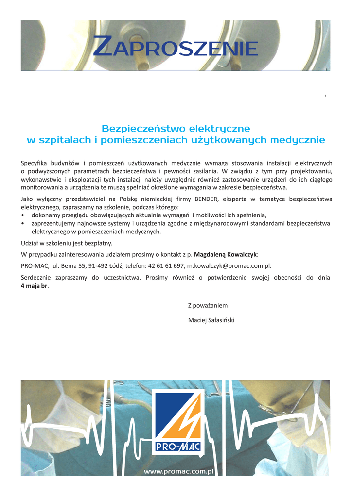 Bezpieczeństwo elektryczne w szpitalach i - Pro-Mac