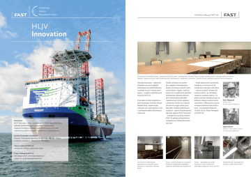 Antykorozja Izolacja Wyposażenie wnętrz Portfolio realizacji FAST SA HLJV Innovation Do wystroju sali konferencyjnej – przeznaczonej dla 30 osób – wykorzystano wysokiej klasy materiały wykończeniowe. Salę wyposażono w zestaw trwałych i ergonomicznych mebli konferencyjnych wykonanych z najlepszych surowców. Szalunki ścienne spełniają najwyższe normy akustyczne. Jednostka Innovation – najbardziej skomplikowany pod względem technologicznym statek zbudowany w polskiej stoczni w okresie powojennym – to jedna z najciekawszych realizacji FAST SA. W jej zakres weszły kompleksowe prace obejmujące wszystkie obszary działania firmy: antykorozyjne, izolacyjne oraz wyposażeniowe wraz z wykonaniem pełnej dokumentacji technicznej. Inwestycja: HLJV Innovation – jedna z największych na świecie specjalistycznych jednostek hydrotechnicznych wyposażona w ciężki system dźwigowy do budowy i obsługi morskich farm wiatrowych; jeden z pierwszych„statków na nogach” zbudowanych w polskiej stoczni Projekt był dużym wyzwaniem pod względem technologicznym (najnowocześniejsze metody wygłuszania hałasów i drgań), wiązał się również ze szczegółowymi analizami dokumentacji (ogromna różnorodność instalowanych materiałów i sprzętów) oraz ścisłą współpracą z armatorem. Krótki czas realizacji zlecenia oraz ciągłe zmiany (przebieg kabli, instalacja dodatkowych urządzeń) – typowe dla prototypowej jednostki, jaką jest HLJV Innovation – wymagał od wszystkich zespołów FAST SA pełnego profesjonalizmu, zaangażowania i doskonałej koordynacji prac. – Dzięki elastyczności, partnerskiej współpracy ze stocznią oraz doświadczeniu całej ekipy, nasza firma – ceniona za jakość i terminowość realizacji zleceń – po raz kolejny stanęła na wysokości zadania. I to podczas szeroko zakrojonych prac na jednostce robiącej wrażenie swoim rozmachem, wielkością oraz zaawansowanymi możliwościami technicznymi – oceniają Artur Wojtaszek i Łukasz Gucwa, Project Managerowie FAST SA. Artur Wojtaszek Antykorozja E. [email protected] Łukasz Gucwa Izolacje i wyposażenie wnętrz E. [email protected] Inwestor/Generalny wykonawca: Inwestor – Konsorcjum budowlane HGO InfraSea Solutions, Niemcy Generalny wykonawca – Stocznia Crist SA, Gdynia Obszar realizacji FAST SA: Antykorozja, izolacja, wyposażenie wnętrz Project Manager FAST SA: Artur Wojtaszek, E. [email protected] Łukasz Gucwa, E. [email protected] Sala kinowo-konferencyjna wyposażona w specjalne ściany akustyczne i luksusowe, skórzane fotele. Drzwi i szalunki akustyczne o wysokim komforcie użytkowania, spełniające najwyższe standardy przeciwpożarowe. Pantry – specjalistyczny sprzęt kuchenny ze stali nierdzewnej, spełniający najwyższe normy morskie. Energochłonna i ognioodporna izolacja w szybie kominowym.