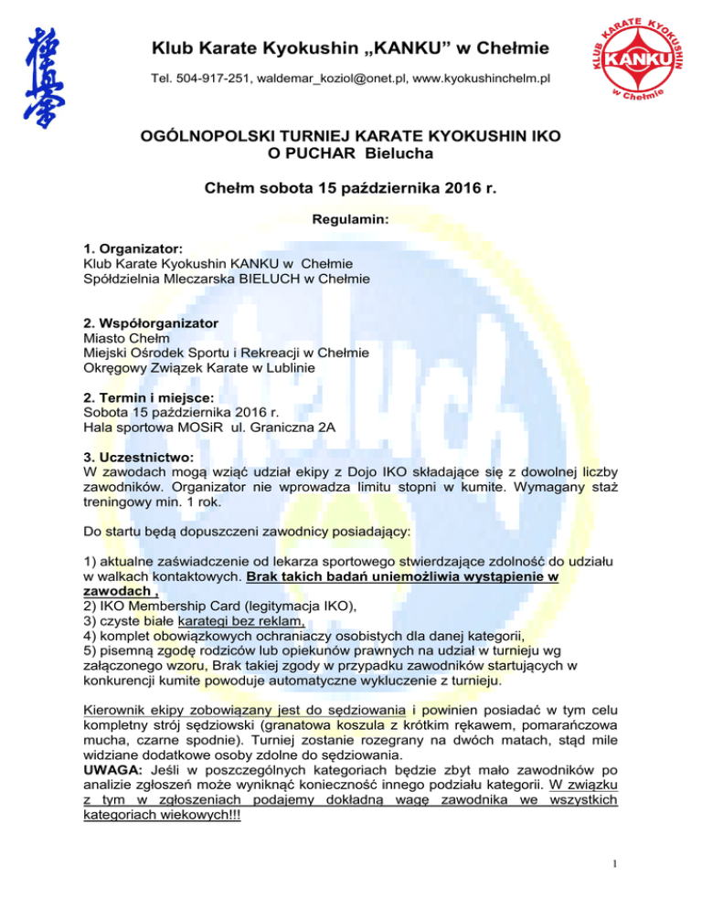 Regulamin - Klub Karate Kyokushin "KANKU" w Chełmie