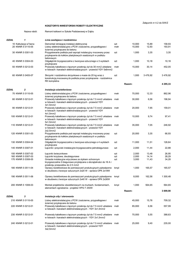 KOSZTORYS INWESTORSKI ROBOTY ELEKTRYCZNE Nazwa robót