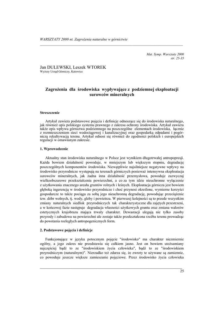 Jan DULEWSKI, Leszek WTOREK Zagrożenia dla środowiska wypł