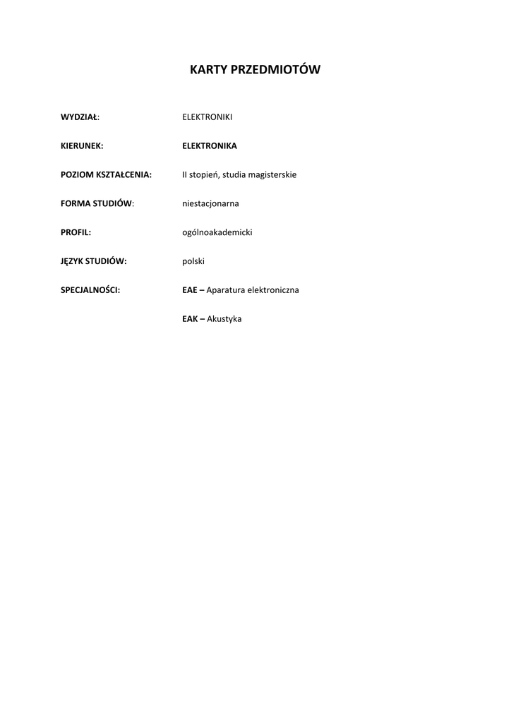 KARTY PRZEDMIOTÓW WYDZIAŁ: ELEKTRONIKI KIERUNEK: ELEKTRONIKA POZIOM KSZTAŁCENIA: II stopień, studia magisterskie FORMA STUDIÓW: niestacjonarna PROFIL: ogólnoakademicki JĘZYK STUDIÓW: polski SPECJALNOŚCI: EAE – Aparatura elektroniczna EAK – Akustyka Zał. nr 4 do ZW 33/2012 WYDZIAŁ ELEKTRONIKI / STUDIUM……………… KARTA PRZEDMIOTU Nazwa w języku polskim ……… Akustyka budowlana i akustyka wnętrz Nazwa w języku angielskim …… Building and room acoustics Kierunek studiów (jeśli dotyczy): ELEKTRONIKA Specjalność (jeśli dotyczy): EAK Stopień studiów i forma: I / II stopień*, stacjonarna / niestacjonarna* Rodzaj przedmiotu: obowiązkowy / wybieralny / ogólnouczelniany * Kod przedmiotu EKKU003 Grupa kursów TAK / NIE* Liczba godzin zajęć zorganizowanych w Uczelni (ZZU) Liczba godzin całkowitego nakładu pracy studenta (CNPS) Forma zaliczenia Wykład 20 Ćwiczenia - 60 - Egzamin / zaliczenie na ocenę* Egzamin / zaliczenie na ocenę* Dla grupy kursów zaznaczyć kurs końcowy (X) X Liczba punktów ECTS w tym liczba punktów odpowiadająca zajęciom o charakterze praktycznym (P) w tym liczba punktów ECTS odpowiadająca zajęciom wymagającym bezpośredniego kontaktu (BK) 3 Laboratorium Projekt 10 - 30 Egzamin / zaliczenie na ocenę* - Egzamin / zaliczenie na ocenę* Seminarium - - Egzamin / zaliczenie na ocenę* 2 1 1 *niepotrzebne skreślić WYMAGANIA WSTĘPNE W ZAKRESIE WIEDZY, UMIEJĘTNOŚCI I INNYCH KOMPETENCJI 1. \ CELE PRZEDMIOTU C1 Poznanie zasad oceny ochrony przeciwhałasowej pomieszczeń. C2 Poznanie podstawowych zasad oceny i projektowania akustyki pomieszczeń. 1 PRZEDMIOTOWE EFEKTY KSZTAŁCENIA Z zakresu wiedzy: PEK_W01 Zna podstawowe parametry opisujące pole akustyczne. PEK_W02 Zna podstawowe zasady rozchodzenia się dźwięku w przestrzeni otwartej. PEK_W03 Potrafi zdefiniować i opisać pole akustyczne w pomieszczeniu. PEK_W04 Zna podstawowe parametry i wskaźniki stosowane do oceny hałasu w pomieszczeniach. Zna wymagania normowe dotyczące dopuszczalnych poziomów hałasów w pomieszczeniach. PEK_W05 Potrafi zdefiniować i opisać izolacyjność akustyczną przegród budowlanych od dźwięków powietrznych. PEK_W06 Potrafi zdefiniować i opisać izolacyjność akustyczną przegród budowlanych od dźwięków uderzeniowych. PEK_W07 Zna podstawowe metody redukcji hałasu. PEK_W08 Zna metody pomiaru mocy akustycznej, izolacyjności akustycznej, czasu pogłosu. PEK_W09 Opisuje parametry materiałów i ustrojów dźwiękochłonnych stosowanych w akustyce wnętrz. PEK_W10 Zna podstawowe metody stosowane w projektowaniu akustyki pomieszczeń. Z zakresu umiejętności: PEK_U01 Potrafi przeprowadzić pomiary czasu pogłosu w pomieszczeniu. PEK_U02 Potrafi przeprowadzić pomiary mocy akustycznej źródła hałasu. PEK_U03 Potrafi przeprowadzić pomiary izolacyjności akustycznej przegród budowlanych. TREŚCI PROGRAMOWE Wy1 Wy2 Wy3 Wy4 Wy5 Wy6 Wy7 Wy8 Wy9 Wy10 Forma zajęć - wykład Parametry opisujące pole akustyczne. Źródło punktowe, źródło liniowe. Rozchodzenie dźwięku w przestrzeni otwartej. Pole akustyczne w pomieszczeniu w funkcji odległości od źródła. Pole rozproszone. Czas pogłosu. Ochrona przeciwdźwiękowa pomieszczeń - wiadomości ogólne. Wymagania normowe, wskaźniki oceny hałasu. Izolacyjność akustyczna przegrody pojedynczej i podwójnej od dźwięków powietrznych. Izolacyjność akustyczna przegród pojedynczych od dźwięków uderzeniowych. Metody redukcji hałasu. Metody obliczenia i pomiaru czasu pogłosu, poziomu mocy akustycznej, izolacyjności akustycznej przegród. Pochłanianie dźwięku, Materiały i ustroje dźwiękochłonne. Podstawowe metody analizy i projektowania akustyki pomieszczeń. Suma godzin Forma zajęć - ćwiczenia Liczba godzin 2 2 2 2 2 2 2 2 2 2 20 Liczba godzin Ćw1 Ćw2 2 Ćw3 Ćw4 .. Suma godzin La1 La2 La3 La4 Forma zajęć - laboratorium Wstęp do laboratorium – organizacja zajęć, stosowana aparatura. Pomiary czasu pogłosu i parametrów powiązanych pomieszczenia. Pomiary mocy akustycznej źródeł hałasu. Kwalifikacja pomieszczenia pomiarowego. Pomiary izolacyjności akustycznej przegrody budowlanej. Suma godzin Forma zajęć - projekt Liczba godzin 1 3 3 3 10 Liczba godzin Pr1 Pr2 Pr3 Pr4 … Suma godzin Forma zajęć - seminarium Liczba godzin Se1 Se2 Se3 … Suma godzin STOSOWANE NARZĘDZIA DYDAKTYCZNE N1. prezentacja multimedialna, N2. tablica, N3 konsultacje. OCENA OSIĄGNIĘCIA PRZEDMIOTOWYCH EFEKTÓW KSZTAŁCENIA Oceny (F – formująca Numer efektu Sposób oceny osiągnięcia efektu kształcenia (w trakcie semestru), P kształcenia – podsumowująca (na koniec semestru) sprawozdanie F1 PEK_U01 sprawozdanie F2 PEK_U02 sprawozdanie F3 PEK_U03 P 70%( PEK_W01- PEK_W10)+30%( PEK_U01- PEK_U03) 3 LITERATURA PODSTAWOWA I UZUPEŁNIAJĄCA LITERATURA PODSTAWOWA: [1] Sadowski J., Akustyka Architektoniczna, PWN, Warszawa, 1976. [2] Kulowski A., Akustyka Sal, Wydawnictwo Politechniki Gdańskiej, Gdańsk 2007. [3] Sadowski J., Podstawy akustyki urbanistycznej, Arkady, Warszawa, 1982. [4] Everest F.A., Podręcznik akustyki, Sonia Draga, Katowice, 2004. LITERATURA UZUPEŁNIAJĄCA: [1] Benson B., Audio engineering handbook, McGrow-Hill, 1988. [2] Barron M., Auditorium Acoustics and Architectural Design, E&FN SPON, 1993. OPIEKUN PRZEDMIOTU (IMIĘ, NAZWISKO, ADRES E-MAIL) Romuald Bolejko, [email protected] 4 MACIERZ POWIĄZANIA EFEKTÓW KSZTAŁCENIA DLA PRZEDMIOTU Akustyka architektoniczna Z EFEKTAMI KSZTAŁCENIA NA KIERUNKU … ELEKTRONIKA I SPECJALNOŚCI EIA Przedmiotowy efekt kształcenia Odniesienie przedmiotowego efektu do efektów kształcenia zdefiniowanych dla kierunku studiów i specjalności (o ile dotyczy)** Cele przedmiotu*** Treści programowe*** Numer narzędzia dydaktycznego*** PEK_W01 (wiedza) PEK_W02 PEK_W03 PEK_W04 PEK_W05 PEK_W06 PEK_W07 PEK_W08 PEK_W09 PEK_W10 S2EAK_W04 C1, C2 Wy1 N1,N2,N3 S2EAK_W04 S2EAK_W04 S2EAK_W04 S2EAK_W04 S2EAK_W04 S2EAK_W04 S2EAK_W04 S2EA