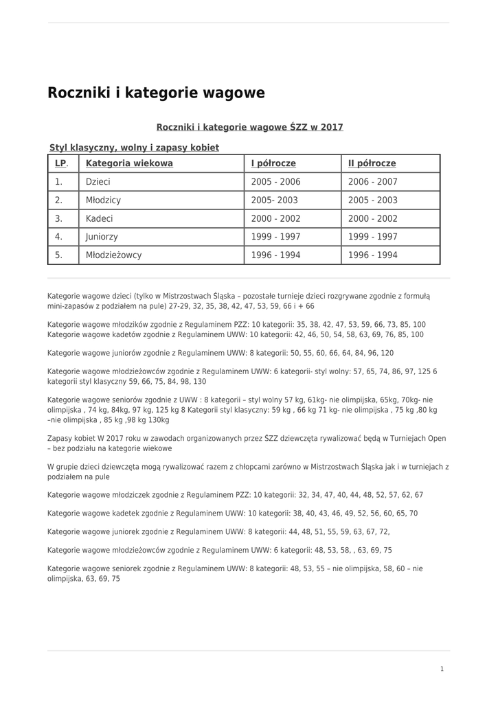 Roczniki i kategorie wagowe