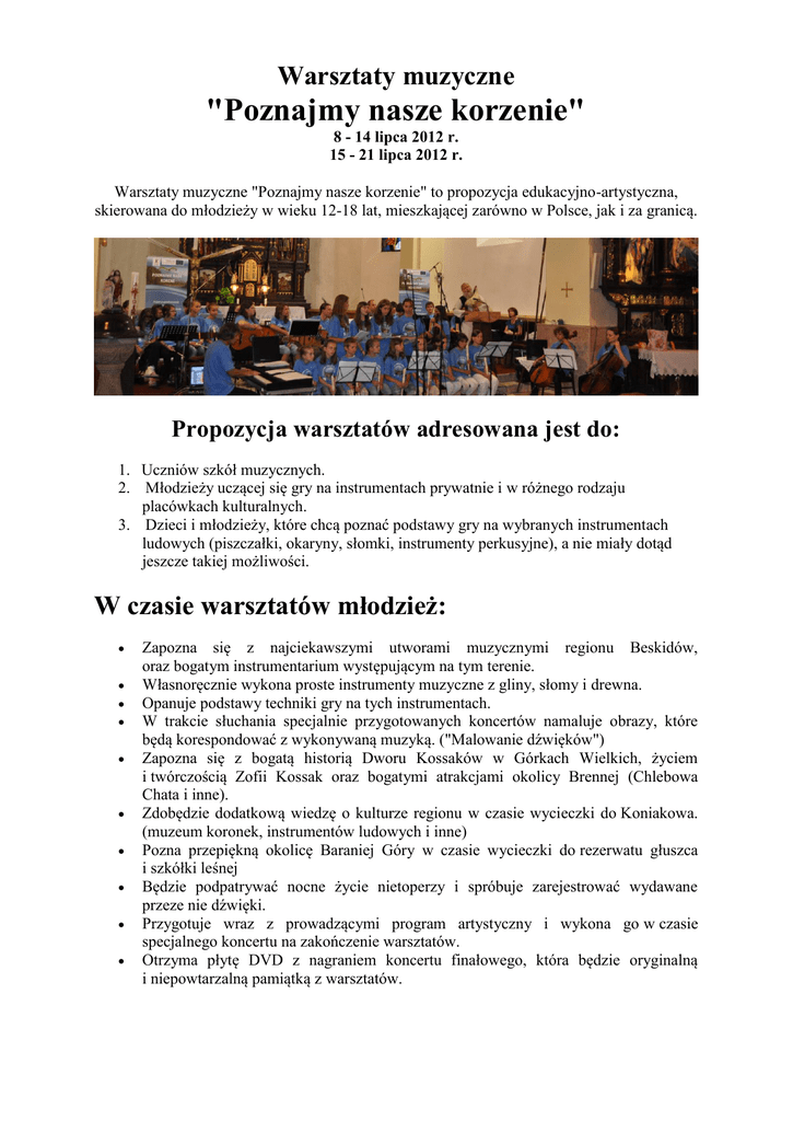 Warsztaty muzyczne "Poznajmy nasze korzenie" to propozycja edukacyjno-artystyczna,