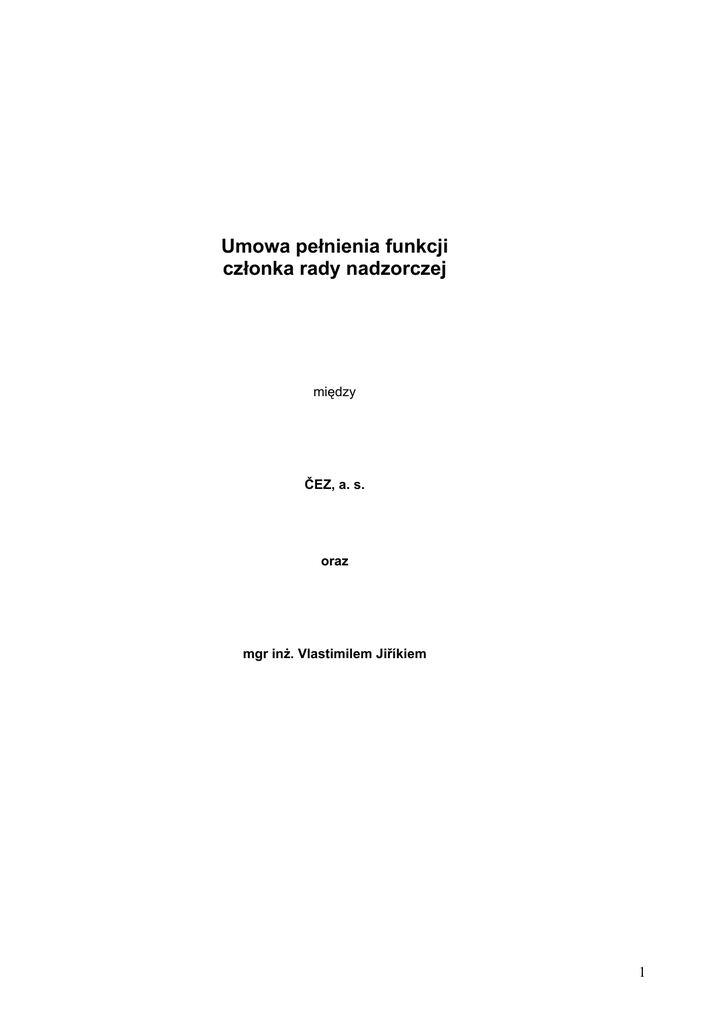 Umowa pełnienia funkcji członka rady nadzorczej pomiędzy ČEZ