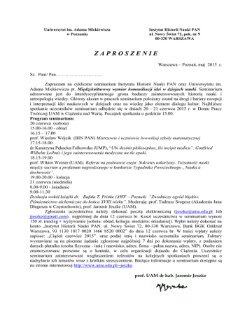 zaproszenie - Instytut Historii Nauki PAN