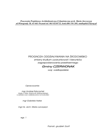 Pracownia Projektowa Architektoniczno-Urbanistyczna arch. Maria Jurczyszyn ul.Winogrady 38, 61-663 Poznań tel. 061-8238722, kom.606 556 269, [email protected] PROGNOZA ODDZIAŁYWANIA NA ŚRODOWISKO zmiany studium uwarunkowań i kierunków zagospodarowania przestrzennego Gminy CZERWONAK woj. wielkopolskie Opracowanie: mgr Andrzej Rybczyński biegły nr 0064, Wojewody Wielkopolskiego, w zakresie ocen oddziaływania na środowisko mgr Gabriela Harke mgr inŜ. arch. Maria Jurczyszyn egz. 1 Poznań, grudzień 2oo9 SPIS TREŚCI 1. PRZEDMIOT I CEL OPRACOWANIA 4 w tym informacje o zawartości, głównych celach projektowanego dokumentu oraz jego powiązaniach z innymi dokumentami propozycje dotyczące przewidywanych metod analizy skutków realizacji postanowień projektowanego dokumentu oraz częstotliwości jej przeprowadzania 2. ZAKRES OPRACOWANIA ORAZ WYKORZYSTANE MATERIAŁY 7 w tym informacje o metodach zastosowanych przy sporządzaniu prognozy 3. CHARAKTERYSTYKA STANU ŚRODOWISKA PRZYRODNICZEGO - Ukształtowanie powierzchni - Budowa geologiczna, warunki geologiczno-gruntowe - Surowce mineralne - Wody powierzchniowe, podziemne i gruntowe - Gleby - Klimat - Szata roślinna i świat zwierzęcy - Walory przyrodniczo-krajobrazowe 4. WPŁYW DOTYCHCZASOWEGO ZAGOSPODAROWANIA TERENU NA ŚRODOWISKO PRZYRODNICZE – OCENA STANU ŚRODOWISKA 19 9 9 9 10 11 13 13 15 17 w tym ocena stanu środowiska na obszarach objętych przewidywanym znaczącym oddziaływaniem 5. PROJEKTOWANE PRZEZNACZENIE TERENU w tym cele ochrony środowiska ustanowione na szczeblu międzynarodowym, wspólnotowym i krajowym, istotne z punktu widzenia projektowanego dokumentu oraz sposoby, w jakich cele te i inne problemy środowiska zostały uwzględnione podczas opracowywania dokumentu - Projektowane zainwestowanie i zagospodarowanie - Istniejące problemy ochrony środowiska istotne z punktu widzenia realizacji projektowanego zagospodarowania (w szczególności dotyczące obszarów podlegających ochronie) - Przewidywane przekształcenia środowiska - Skutki nie uchwalenia studium w tym potencjalne zmiany tego stanu w przypadku braku realizacji projektowanego dokumentu 6. PROGNOZA ZMIAN W ŚRODOWISKU (OCENA ODDZIAŁYWANIA USTALEŃ STUDIUM NA ŚRODOWISKO) 21 21 26 27 28 29 w tym oddziaływanie bezpośrednie, pośrednie, wtórne, skumulowane, krótkoterminowe, średnioterminowe i długoterminowe, stałe i chwilowe oraz pozytywne i negatywne na: - Wykorzystanie walorów i zasobów środowiska RóŜnorodność biologiczna Wpływ ustaleń studium na obszary chronione Oddziaływanie ustaleń studium na florę i faunę Wpływ ustaleń studium na zdrowie ludzi Przekształcenia powierzchni ziemi Wpływ ustaleń studium na zmianę warunków gruntowo-wodnych Wpływ studium na wody powierzchniowe i podziemne Przekształcenia gleb Klimat lokalny i stan higieny atmosfery w tym informacje o moŜliwym transgranicznym oddziaływaniu na środowisko . - Wpływ projektowanego zagospodarowania na zabytki i dobra materialne - Wytwarzanie odpadów - Przewidywane skutki oddziaływania planu na całokształt środowiska przyrodniczego 30 31 32 35 36 37 38 39 39 40 42 43 43 2 7. ROZWIĄZANIA MINIMALIZUJĄCE NEGATYWNE ODDZIAŁYWANIE NA ŚRODOWISKO 47 mające na celu zapobieganie, ograniczanie lub kompensację przyrodniczą negatywnych oddziaływań na środowisko, mogące być rezultatem realizacji projektowanego dokumentu, w szczególności na cele i przedmiot ochrony obszaru Natura 2000 oraz integralność tego obszaru w tym propozycje dotyczące przewidywanych metod analizy skutków realizacji postanowień projektowanego dokumentu oraz częstotliwości jej przeprowadzania oraz ewentualne rozwiązania alternatywne do rozwiązań zawartych w projektowanym dokumencie wraz z uzasadnieniem ich wyboru względnie wyjaśnienie braku rozwiązań alternatywnych (ze wskazaniem napotkanych trudności, wynikających z niedostatków techniki lub luk we współczesnej wiedzy) 8. OCENA ROZWIĄZAŃ FUNKCJONALNO-PRZESTRZENNYCH, PODSUMOWANIE I WNIOSKI 48 STRESZCZENIE 62 ZAŁĄCZNIKI: Tło przyrodnicze około 1 : 80 000 Wybrane tereny nowego i adaptowanego zagospodarowania przestrzennego 1 : 10 000 (wydruk w zmniejszeniu) 3 1. PRZEDMIOT I CEL OPRACOWANIA Przedmiotem opracowania jest prognoza oddziaływania na środowisko ustaleń zmiany Studium uwarunkowań i kierunków zagospodarowania przestrzennego gminy Czerwonak, wywołanej uchwałą nr 73/XI/2007, Rady Gminy Czerwonak, z 21 czerwca 2007 r. oraz przekazanej do opiniowania i uzgodnień w sierpniu 2008 r. Studium uwarunkowań i kierunków zagospodarowania przestrzennego jest ustawowo usankcjonowanym elementem planowania strategicznego, kreującym politykę przestrzenną gminy. Jej określenie poprzedzone zostało m.in. opracowaniem strategii rozwoju województwa oraz gminy. Jednym z najwaŜniejszych celów operacyjnych Strategii rozwoju województwa wielkopolskiego do 2020 r. jest poprawa stanu środowiska i racjonalne gospodarowanie zasobami przyrodniczymi. Jej główne cele to: poprawa jakości przestrzeni województwa wielkopolskiego i dostosowanie jej do wyzwań XXI wieku, zwiększenie efektywności wykorzystania potencjałów rozwojowych, wzrost kompetencji mieszkańców i promocja zatrudnienia oraz wzrost spójności i bezpieczeństwa społecznego. Strategia jest elementem systemu programowania na róŜnych poziomach: wspólnotowym, krajowym, regionalnym i lokalnym, w układach: ogólnym, horyzontalnym i resortowym. Uwzględnia ustalenia zawarte w tych dokumentach a jej treść jest zharmonizowana z Narodowym Planem Rozwoju na lata 2007-2013, Narodową Strategią Rozwoju Regionalnego oraz projektowanymi, nowymi kierunkami polityki spójności strukturalnej Unii Europejskiej, w tym przede wszystkim Strategią Lizbońską. Celem studium jest więc określenie polityki przestrzennej gminy, w tym lokalnych zasad zagospodarowania przestrzennego. W przypadku gminy Czerwonak było to szczególnie trudne, wymagało bowiem w