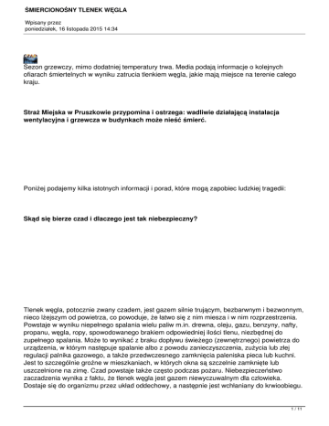 śmiercionośny tlenek węgla - Straż Miejska w Pruszkowie