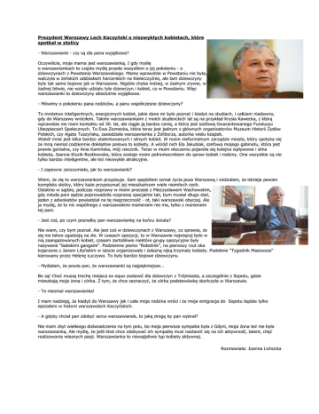 Prezydent Warszawy Lech Kaczyński o niezwykłych kobietach, któr