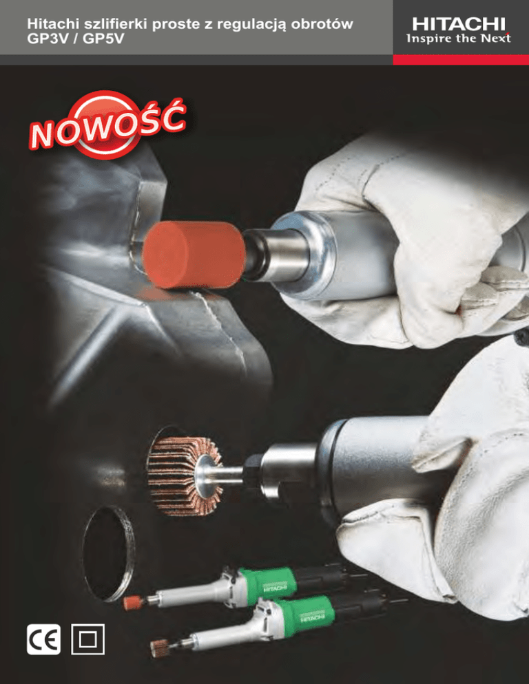 Hitachi szlifierki proste z regulacją obrotów GP3V / GP5V Ć Ś O W O N Szlifierki proste GP3V oraz GP5V, to precyzyjne urządzenia do wszechstronnego wykorzystania. Kompaktowe wymiary oraz ergonomiczny kształt umożliwiają pewną i wygodną pracę w trudno dostępnych miejscach. Mocne silniki oraz elektroniczne sterowanie kontrolujące prędkość obrotową oraz start urządzenia, to kolejne zalety szlifierek prostych Hitachi. GP5V GP3V Szlifierki zostały wyposażone w specjalne koło nastawy. Za pomocą niego łatwo można dostosować odpowiednie obroty szlifierki do żądanej pracy. Sprawdź rodzaj pracy w tabeli poniżej i dostosuj odpowiednie obroty. Nr 1. 2. 3. 4. 5. 6. Rodzaj pracy szlifowanie precyzyjne, wykańczanie usuwanie zabrudzeń, farby usuwanie rdzy likwidacja ostrych krawędzi, nadlewek szlifowanie zgrubne na mniejszych obrotach szlifowanie zgrubne na dużych obrotach Obr./min 7 000 11 400 15 800 20 200 24 600 29 000 Nr 1. 2. 3. 4. 5. 6. Obr./min 2 000 3 250 4 500 5 800 7 050 8 300 200 200 95 62 95 62 O35 5 O3 Specyfikacja: Max. średnica kamienia szlifierskiego (mm) Moc (W) Regulacja obrotów w zakresie (obr/min) Elektroniczne sterowanie: miękki strat i stała prędkość Włącznik w górnej części obudowy Uchwyt boczny (rączka) Obwód korpusu (mm) Waga (kg) Rodzaj pracy szlifowanie precyzyjne, wykańczanie usuwanie zabrudzeń, farby usuwanie rdzy likwidacja ostrych krawędzi, nadlewek szlifowanie zgrubne na mniejszych obrotach szlifowanie zgrubne na dużych obrotach Specyfikacja: 25 (1”) 760 7000 - 29000 TAK TAK TAK 200 1,8 Max. średnica kamienia szlifierskiego (mm) Moc (W) Regulacja obrotów w zakresie (obr/min) Elektroniczne sterowanie: miękki strat i stała prędkość Włącznik w górnej części obudowy Uchwyt boczny (rączka) Obwód korpusu (mm) Waga (kg) 50 (2”) 760 2000 - 8300 TAK TAK TAK 200 1,9 Szlifierka prosta GP2S2 GP2S2 SZLIFIERKA PROSTA MAKSYMALNA ŚREDNICA KAMIENIA SZLIFIERSKIEGO (mm) MOC (W) UCHWYT (mm) PRĘDKOŚĆ OBROTOWA BEZ OBCIĄŻENIA (1/min) WAGA (kg) DŁUGOŚĆ CAŁKOWITA (mm) | moc 520 W, średnica kamienia szlifierskiego 25 mm | doskonały system łożyskowania | ergonomiczna obudowa ułatwiająca szlifowanie spawów od wewnątrz | silnik nowej generacji odporny na przeciążenia | wyposażenie standardowe: klucz | Akcesoria Tulejka zaciskowa średnica nr artykułu Ściernice trzpieniowe (WA60PV, O6 mm) nr Klucz płaski 25 520 6 29 000 1,7 359 3 mm 932624 6 mm 332812 8 mm 985135 1/8" 985136 1/4" 932666Z 12 mm 936553 17 mm 936638 NASZ PARTNER HANDLOWY średnica długość nr artykułu KA-7 25 mm 16 mm 939106 KA-1 32 mm 32 mm 939100 KA-8 16 mm 16 mm 939107 KA-2 19 mm 28 mm 939101 KA-9 25 mm 13 mm 939108 KA-3 17 mm 32 mm 939102 KA-10 32 mm 10 mm 939109 KA-4 25 mm 25 mm 939103 KA-11 16 mm 19 mm 949023 KA-5 16 mm 32 mm 939104 KA-12 16 mm 13 mm 949021 KA-6 32 mm 10 mm 939105 KA-13 13 mm 19 mm 949022 HITACHI POWER TOOLS POLSKA SP. Z O.O. UL. GIERDZIEJEWSKIEGO 1, 02-495 WARSZAWA TELEFON: 22 863 33 78, 22 863 33 79, FAX: 22 863 33 82 www.hitachi-narzedzia.pl