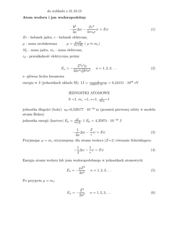 do wyk ladu z 21.10.13 Atom wodoru i jon wodoropodobny − h2 2ľ