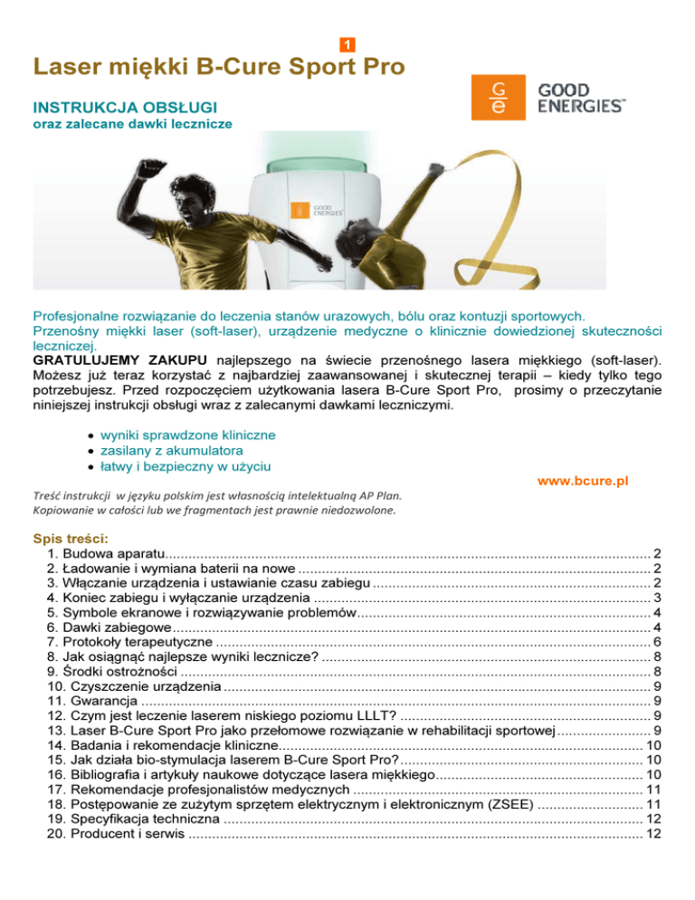Instrukcja obslugi lasera B-Cure Sport Pro.