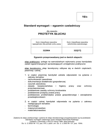 1 6/c Standard wymagań – egzamin czeladniczy PROTETYK SŁUCHU