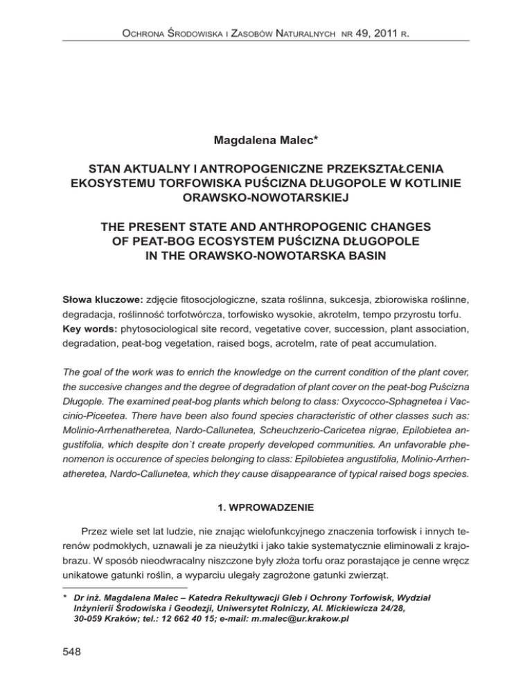 Magdalena Malec* Stan aktualny i antropogeniczne przekSztałcenia