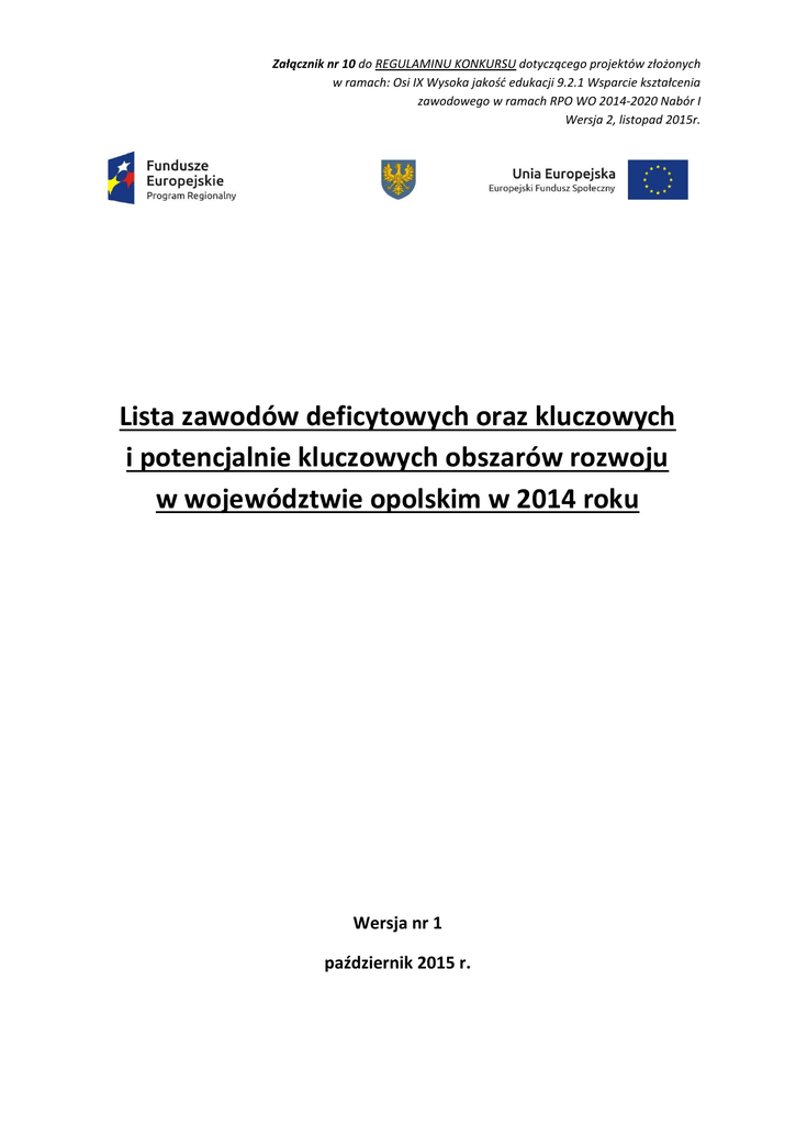 Załącznik nr 10 Lista zawodów deficytowych oraz