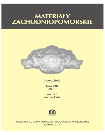 MATERIAŁY ZACHODNIOPOMORSKIE Rocznik Naukowy Muzeum Narodowego w Szczecinie Nowa Seria tom VIII 2011 zeszyt 1 Archeologia Szczecin 2012 Redaktor naczelny wydawnictw Muzeum Narodowego w Szczecinie Lech Karwowski Redakcja naukowa tomu Anna B. Kowalska, Krzysztof Kowalski, Dorota Kozłowska-Skoczka, Bartłomiej Rogalski Redakcja wydawnicza i korekta Dorota Cyngot Tłumaczenia na język angielski Monika Witek Recenzenci dr hab. prof. PAN Tadeusz Galiński prof. dr hab. Marian Rębkowski Adres Redakcji Muzeum Narodowe w Szczecinie 70-561 Szczecin, ul. Staromłyńska 27 tel. (+48) 91 431 52 02 fax (+48) 91 431 52 04 Projekt okładki Waldemar Wojciechowski Skład i druk Soft Vision ISSN 0076-5236 © Copyright by Muzeum Narodowe w Szczecinie i Autorzy Szczecin 2012 SPIS TREŚCI S T U D I A I M AT E R I A ŁY Marcin Dziewanowski Głos w sprawie klasyfikacji produktów eksploatacji wiórowej w zespołach świderskich ............................................................................................................. 7 A comment on a classification of the blade exploitation in Swiderian assemblages .............. 29 Aleksandra Górska-Maciałowicz Starożytne zabytki z doliny rzeki Iny w Suchaniu, pow. stargardzki ................. 31 Ancient artefacts from the Ina valley in Suchań, Stargard Szczeciński County ................... 121 A n t o n i Po r z e z i ń s k i Wczesnośredniowieczne groby ciałopalne na cmentarzysku w Cedyni, stanowisko 2 ........................................................................................................ 123 The early medieval cremation cemetery in Cedynia (site 2) ................................................ 163 Piotr Pudło Ponownie o wczesnośredniowiecznym mieczu wyłowionym z Zalewu Szczecińskiego ..................................................................................................... 165 A re-investigation of an early medieval sword recovered from the Szczecin Lagoon ......... 178 Andrzej Janowski Wyniki przedwojennych badań na grodzisku w Starogardzie Łobeskim ......... 179 Results of pre-war excavations at a stronghold in Starogard Łobeski .................................. 194 Andrzej Janowski Co odkrył Alfred Rowe na „Diabelskiej Grobli” w Trzebawiu? ...................... 195 What did Alfred Rowe find on the “Devilish Causeway” in Trzebawie? ............................ 220 Eugeniusz Cnotliwy Klasztor cystersów w Kołbaczu. Badania archeologiczne w latach 1960-1964 i 1978-1982 ......................................................................................................... 221 The Cistercian monastery in Kołbacz. Archaeological excavations in 1960-1964 and 1978-1982 ........................................................................................................................ 239 Grzegorz J. Brzustowicz, Andrzej Kuczkowski Gotycka pieczęć rycerska spod Choszczna ....................................................... 241 A gothic knight seal from somewhere around Choszczno .................................................. 250 3 Judyta Julia Gładykowska-Rzeczycka, Lidia Cymek, To m a s z K o z ł o w s k i , S ł a w o m i r S ł o w i ń s k i Szkielety z ruin klasztoru Franciszkanów w Pyrzycach, woj. zachodniopomorskie. Analiza antropologiczno-paleopatologiczna ......... 251 Skeletons from ruins of the Franciscan monastery in Pyrzyce, West Pomeranian Voivodeship. Anthropological and paleopathological analysis ............... 277 ODKRYCIA Marcin Dziewanowski Najnowsze odkrycia z epoki kamienia na stanowisku nr 3 w Chwarstnicy, woj. zachodniopomorskie Recent findings from the Stone Age at site 3 in Chwarstnica, West Pomeranian Voivodeship ............................................................................................... 279 Dorota Kozłowska- Skoczka Sztylet krzemienny z okolic jeziora Miedwie, powiat stargardzki Flint dagger found in the vicinity of the Miedwie Lake, Stargard Szczeciński County ..... 289 Anna B. Kowalska, Krzysztof Kowalski Wczesnośredniowieczna osada w Kunowie, gm. Kobylanka Early Medieval settlement from Kunowo, Kobylanka Commune ...................................... 293 Roman Kamiński Kafel Hansa Bermana z rynku Starego Miasta w Kamieniu Pomorskim Hans Berman’s stove tile from the Old Town market in Kamień Pomorski ...................... 309 Jacek Borkowski, Andrzej Kuczkowski, Michał Kulesza Kościół p.w. Przemienienia Pańskiego w Mielnie (gm. loco) w świetle badań archeologicznych Transfiguration Church in Mielno (loco commune) in the light of the archaeological research ................................................................................................ 317 Jacek Borkowski, Andrzej Kuczkowski Nieznane krypty w kościele p. w. Niepokalanego Poczęcia NMP w Żydowie (gm. Polanów) Unknown crypts in Church of the Immaculate Conception of Blessed Virgin Mary in Żydowo (Polanów commune) .......................................................................................... 357 RECENZJE I OMÓWIENIA Krzysztof Kowalski Agnieszka Matuszewska, Kultura ceramiki sznurowej na Dolnym Nadodrzu, seria: ARCHAEOLOGIA BIMARIS (Uniwersytet im. Adama Mickiewicza w Poznaniu Instytut Prahistorii), Monografie, tom 5, Wydawnictwo Poznańskie, Muzeum Narodowe w Szczecinie, Poznań 2011, ss. 312, ISBN 978-83-7177781-3, ISBN 978-83-86136-98-8 ....................................................................... 373 Anna B. Kowalska Jacek Borkowski, Andrzej Kuczkowski, Cussalyn-Cőßlin-Koszalin. Źródła archeologiczne do dziejów Koszalina, „Koszalińskie Zeszyty Muzealne”, Seria B-VIII:Archeologia, Tom I, Koszalin 2011, ss. 315 .................................. 375 Anna B. Kowalska Wojciech Chudziak, Ryszard Kaźmierczak, Jacek Niegowski, Podwodne dziedzictwo archeologiczne Polski. Katalog stanowisk (badania 2006-2009), ss. 272, Toruń 2011, ISBN 978-83-231-2735-2; 978-83-925347-2-3 ................................................