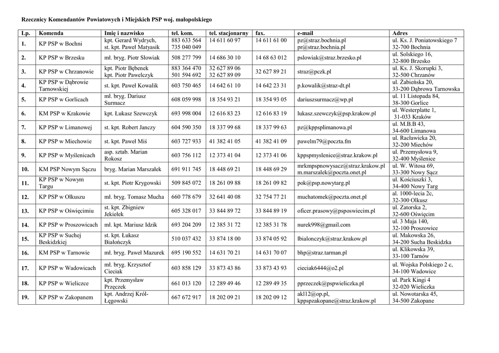 Rzecznicy Komendantów Powiatowych i Miejskich PSP woj
