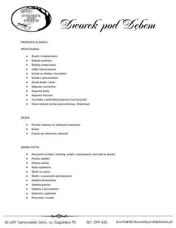 PROPOZYCJA MENU - Dworek Pod Dębem