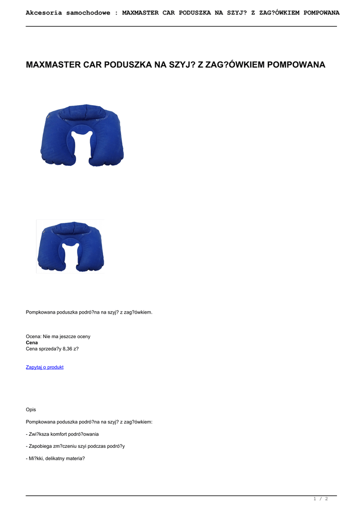 Akcesoria samochodowe : MAXMASTER CAR PODUSZKA NA SZYJ? Z ZAG?ÓWKIEM POMPOWANA MAXMASTER CAR PODUSZKA NA SZYJ? Z ZAG?ÓWKIEM POMPOWANA Pompkowana poduszka podró?na na szyj? z zag?ówkiem. Ocena: Nie ma jeszcze oceny Cena Cena sprzeda?y 8,36 z? Zapytaj o produkt Opis Pompkowana poduszka podró?na na szyj? z zag?ówkiem: - Zwi?ksza komfort podró?owania - Zapobiega zm?czeniu szyi podczas podró?y - Mi?kki, delikatny materia? 1 / 2 Akcesoria samochodowe : MAXMASTER CAR PODUSZKA NA SZYJ? Z ZAG?ÓWKIEM POMPOWANA - ?atwe przechowywanie dzi?ki ma?ym rozmiarom. Opinie Nikt jeszcze nie recenzowa? tego produktu. 2 / 2 Powered by TCPDF (www.tcpdf.org)