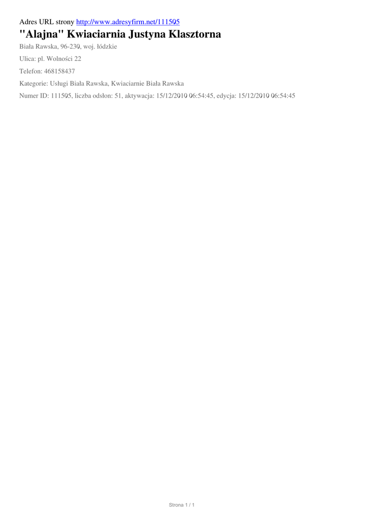"Alajna" Kwiaciarnia Justyna Klasztorna, Biala Rawska