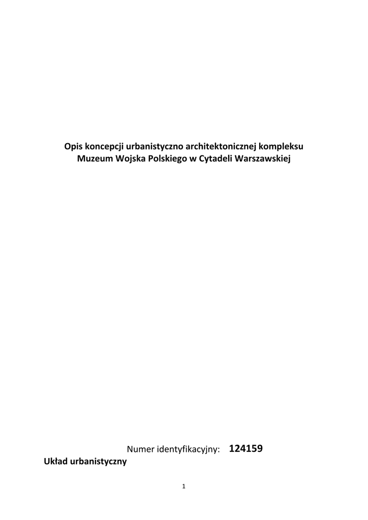 Opis koncepcji urbanistyczno architektonicznej kompleksu Muzeum Wojska Polskiego w Cytadeli Warszawskiej Numer identyfikacyjny: 124159 Układ urbanistyczny 1 Nowo projektowane założenie Muzeum znajduje się na Cytadeli Warszawskiej i jest jednocześnie zamknięciem osi wiodącej wzdłuż Alei Wojska Polskiego. Projektowana struktura, w swoim układzie kwadratu nawiązuje do historycznego układu Koszar Gwardii Koronnej. Tworzy w ten sposób plac, którego odpowiednikiem był dawny plac Gwardii. Projektowany budynek ekspozycji muzealnej rozcięty został bramą wjazdową, zaś centralnym punktem całego założenia jest budynek w kształcie krzyża Virtuti Militari, spinający sobą dwa ramiona projektowanej struktury wystawienniczej otaczającej nowy plac. Architektura Centralny obiekt składa się z czterech ramion , z którego każde jest modułem. Funkcje w segmentach zostały podzielone na podstawie programu przedstawionego przez inwestora (I‐ Ramię wschodnie – Biblioteka (II‐ Ramię zachodnie – Gastronomia (III‐ Ramię północne ‐ Audytorium (IV‐ Ramię południowe‐ Sale edukacyjne Całość założenia łączy reprezentacyjny hol o układzie krzyża. To w tym miejscu, zwiedzający zaczyna i kończy swoją podróż po Muzeum Wojska Polskiego. Ekspozycja odbywa się w ramionach obiektu okalającego plac. Na dachu znajduje się trybuna do spacerowania z możliwością wglądu na plac (o pow. ok 14 tyś. m 2) w przypadku organizowania parad i pokazów wojskowych. Dodatkowo w od wewnętrznej strony placu jest miejsce pod betonowymi ramionami na ekspozycję plenerową (o pow. 6450 m2 ) z możliwością jej sezonowego zamykania. Dodatkiem do całego założenia jest w północnej części budynek magazynowy z pracowniami konserwatorskimi. Jest on ograniczony systemem ulic na terenie Cytadeli, dlatego posiada tak nieregularny kształt. Jest on cały pokryty dachem zielonym i wkopany w teren, dzięki temu nie tworzy konkurencji dla głównego założenia, a jednocześnie tworzy nawiązanie do zieleni znajdującej po południowej stronie Cytadeli. Układ funkcjonalny Ruch zwiedzających jest podzielony na dwie kategorie. Pierwsza to osoby przyjeżdżające samochodami. One wchodzą do budynków z poziomu garażu podziemnego. Przechodzą 2 przez część ekspozycyjną (galeria sztuki) i dochodzą do szatni. Potem wchodzą schodami lub windami do głównego holu (Poziom 0). Druga kategoria osób to wycieczki szkolne przyjeżdżające autokarami. Osoby wysiadają na parkingu dla autokarów, a potem kierują się wzdłuż ekspozycji plenerowej do głównego wejścia, tak jak wszystkie osoby, które dostały się na Cytadelę pieszo. W holu spotykają się wszyscy przybyli do muzeum goście, to tam uzyskują oni niezbędne informacje w punkcie informacyjnym oraz mogą zakupić bilety. To właśnie z tego miejsca można dostać się do wszystkich czterech modułów. Każdy ma określoną funkcję dlatego jest indywidualnie dostosowany do potrzeb, posiadając przy tym własne zaplecza socjalne i techniczne. Dzięki prostemu układowi łatwo można dostać się do wybranego przez siebie miejsca w zależności od potrzeb. Na Poziomie 0 ‐ znajdują się szatnie, główne audytorium na ok. 500osób, sale do lekcji muzealnych, sala multimedialna, księgarnia, biblioteka i restauracja, która jest również dostępna od zewnątrz. Z poziomu parteru można dostać się na ekspozycje plenerową, której główna część znajduje na dziedzińcu oraz wewnętrzną mieszczącą się w ramionach obiektu. Na Poziomie 1 zostały umieszczony drugi poziom biblioteki, sale dla pracowników obsługi merytorycznej, oraz bar dla pracowników obiektu. Na Poziomie 2 został umieszczony kompleks naukowy i administracyjny, po dwa moduły każdy. Ruch eksponatów odbywa się przez budynek magazynowy, w którym został zawarty cały program funkcjonalny zaproponowany przez inwestora. Obiekt ten jest bezpośrednio skomunikowany z częścią ekspozycyjną korytarzem technicznym, co ułatwia poruszanie się opiekunom eksponatów i pracownikom naukowym. Układ drogowy Układ komunikacyjny na terenie Cytadeli jest oparty na założeniach studium komunikacyjnego opracowanego dla tego terenu. Wyjątek stanowi ul. Gwardii, która w projektowanym założeniu zostaje poprowadzona pod ziemią i stanowi jednocześnie wjazd do 3 garażu podziemnego na ok. 320 stanowisk. Parking dla dwunastu autokarów wycieczkowych został usytuowany w zachodniej części terenu inwestycji. Koszty Koszty wykonania robót realizowanych na podstawie pracy konkursowej według szczegółowego zakresu opracowania zawartego w PKT 5.2. ROZDZIAŁU II 27.900.000,‐ ADRES DO KORENSPODENCJI Jolanta Jońska Ul. Obrońców Wybrzeża 13D/2 81‐397 Gdynia 4