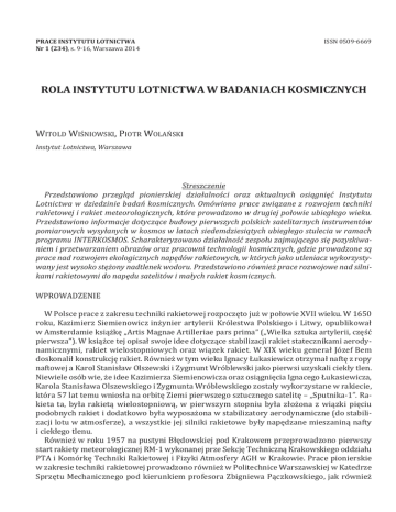 ROLA iNSTYTUTU LOTNiCTWA W BAdANiACh