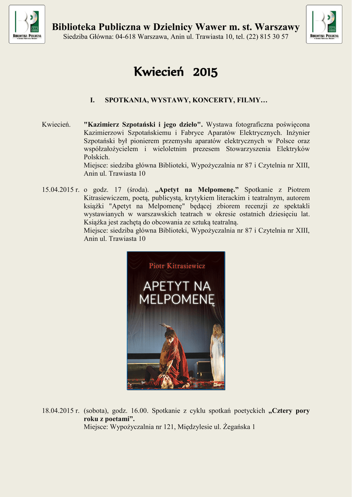 Biblioteka Publiczna w Dzielnicy Wawer m st. Warszawy_kwiecień