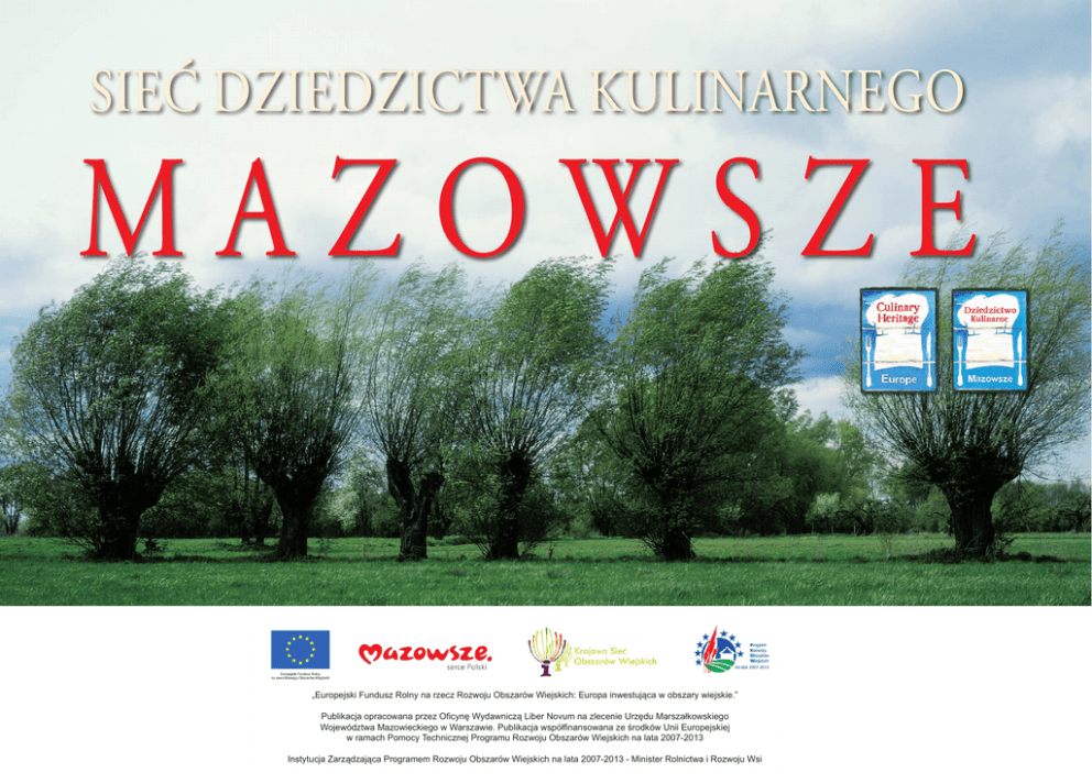 Sieć Dziedzictwa Kulinarnego Mazowsze „Europejski Fundusz Rolny na rzecz Rozwoju Obszarów Wiejskich: Europa inwestująca w obszary wiejskie.” Publikacja opracowana przez Oficynę Wydawniczą Liber Novum na zlecenie Urzędu Marszałkowskiego Województwa Mazowieckiego w Warszawie. Publikacja współfinansowana ze środków Unii Europejskiej w ramach Pomocy Technicznej Programu Rozwoju Obszarów Wiejskich na lata 2007-2013 Instytucja Zarządzająca Programem Rozwoju Obszarów Wiejskich na lata 2007-2013 - Minister Rolnictwa i Rozwoju Wsi Sieć Dziedzictwa Kulinarnego Mazowsze „Europejski Fundusz Rolny na rzecz Rozwoju Obszarów Wiejskich: Europa inwestująca w obszary wiejskie.” Publikacja opracowana przez Oficynę Wydawniczą Liber Novum na zlecenie Urzędu Marszałkowskiego Województwa Mazowieckiego w Warszawie. Publikacja współfinansowana ze środków Unii Europejskiej w ramach Pomocy Technicznej Programu Rozwoju Obszarów Wiejskich na lata 2007-2013 Instytucja Zarządzająca Programem Rozwoju Obszarów Wiejskich na lata 2007-2013 - Minister Rolnictwa i Rozwoju Wsi Polacy coraz chętniej sięgają po dania przygotowane z produktów tradycyjnych. Walory i specyfika tego typu potraw są ściśle związane i kojarzone z danym regionem. Produkty o wysokiej jakości wytworzone w sposób naturalny zyskują duże uznanie i stałą grupę nabywców. Dlatego tak cenne jest zachowanie i popularyzowanie wiedzy o lokalnych recepturach przekazywanych z pokolenia na pokolenie. Doskonale wiemy, że spośród wielu dań często wybieramy te, które budzą wspomnienia z dzieciństwa, przywołują obrazy poszczególnych miejsc czy sytuacji. Identyfikacja niezapomnianych doznań kulinarnych właśnie z Mazowszem sprawia, że jesteśmy regionem pozytywnie postrzeganym i coraz chętniej odwiedzanym. Stąd też działania Samorządu Województwa Mazowieckiego zmierzające do pielęgnowania szeroko rozumianej tradycji. W 2008 r. przyłączyliśmy się m.in. do Europejskiej Regionalnej Sieci Dziedzictwa Kulinarnego, zrzeszającej regiony, które dbają o to by zapewnić mieszkańcom i turystom wysokiej jakości wyjątkową żywność. Sukcesywnie dodajemy też mazowieckie wyroby do Listy Produktów Tradycyjnych, prowadzonej przez ministra rolnictwa i rozwoju wsi. Wspólnie zadbajmy o to, by naszym atutem, obok malowniczych krajobrazów czy atrakcyjnej bazy turystycznej, była również regionalna kuchnia – smaczna i wyjątkowa. Adam Struzik Marszałek Województwa Mazowieckiego Pohulanka w Muzeum Wsi Mazowieckiej w Sierpcu Bogactwem mazowieckiej wsi są produkty tradycyjne i regionalne. Przygotowane z naturalnych surowców, według tradycyjnych receptur, przyciągają do małych miejscowości coraz więcej konsumentów poszukujących zdrowej żywności. To właśnie ekologiczna żywność i rozwój agroturystyki są największą szansą dla mazowieckich wsi. Stwarzają możliwości rozwoju całego rynku usług okołoturystycznych, takich jak gastronomia, baza noclegowa, ścieżki rozwojowe, tereny rekreacyjne czy Internet. Sprzedaż tradycyjnych dań i produktów podnosi atrakcyjność oferty gospodarstw turystycznych i stwarza ich producentom możliwość rozwoju całej sieci sprzedaży – zarówno bezpośrednio u producenta, jak i poprzez dostarczanie wyrobów do wybranych sklepów czy innych miejsc sprzedaży w dużych aglomeracjach. To także szansa dla lokalnych społeczności, które organizując imprezy plenerowe czy targi, przyciągają turystów i konsumentów do swoich miejscowości. Wychodząc naprzeciw tym potrzebom, jako samorząd województwa mazowieckiego wspieramy organizację festynów, imprez tematycznych inicjowanych przez Koła Gospodyń Wiejskich, konkursów kulinarnych, organizację targowisk i cyklicznych miejsc sprzedaży bezpośredniej. Dbamy o budowę marki regionu w oparciu o produkt regionalny i tradycyjny, wspieramy wydawnictwa promocyjne oraz ścieżki tematyczne łączące aspekt dziedzictwa kulturowego, walory krajobrazu naturalnego oraz promujące produkty tradycyjne i regionalne. Zapraszamy na Mazowsze. Janina Ewa Orzełowska Wicemarszałek Województwa Mazowieckiego MAZOWSZE prezentacji zdrowej żywności na targach krajowych i zagranicznych, kiermaszach, festynach. Jest też członkiem Europejskiej Sieci Regionalnego Dziedzictwa Kulinarnego, promującej wysokiej klasy żywność regionalną opartą na lokalnych zasobach surowcowych. Poza tym aż 71 produktów z Mazowsza wpisanych zostało na „Listę produktów tradycyjnych”. Rosnące z każdym rokiem zainteresowanie – producentów, jak i konsumentów – tego rodzaju żywnością pozwala sądzić, że artykuły o podwyższonej jakości, pomimo wyższej ceny, zjednują sobie coraz więcej zwolenników. Zachęcamy do odwiedzania Mazowsza – poznawania pięknych, bogatych historycznie miejsc i próbowania tak różnorodnych, tradycyjnych smaków. w poszukiwaniu różnych smaków Nasze zdrowie w dużej mierze zależy od środowiska, w którym żyjemy, ale też od wartości zdrowotnej tego, co jemy. Mazowsze ma w dużej mierze charakter rolniczy, a to szczególnie zobowiązuje do przestrzegania zasad dobrej praktyki rolniczej i produkcyjnej. Dzięki rosnącej świadomości mieszkańców, właśnie na Mazowszu odnaleźć można smaczne, zdrowe, wysokiej klasy produkty, wytwarzane dzięki naturalnym procesom technologicznym, według tradycyjnej receptury, z surowców pochodzących z upraw ekologicznych 6 i rolnictwa zintegrowanego. Są to perełki wśród całej gamy dostępnych na rynku artykułów. Samorząd województwa mazowieckiego realizuje szereg inicjatyw na rzecz promocji i rozwoju rynku produktów ekologicznych, tradycyjnych i regionalnych. Zachęca producentów do korzystania z różnych form dofinansowania, zaprasza do udziału w tematycznych konferencjach, 7 Muzeum Wsi Mazowieckiej w Sierpcu PŁOCKO-CIECHANOWSKA CZĘŚĆ PÓŁNOCNEGO MAZOWSZA to miejsce pełne zabytków, ciekawych muzeów i niepo