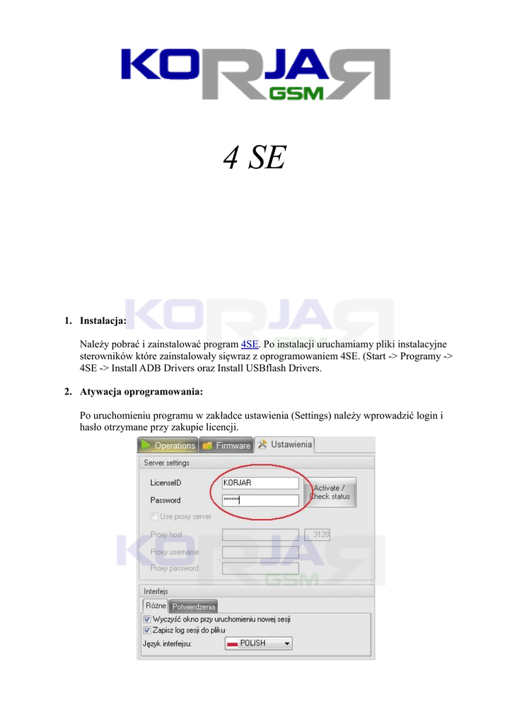 1. Instalacja: Należy pobrać i zainstalować program 4SE. Po