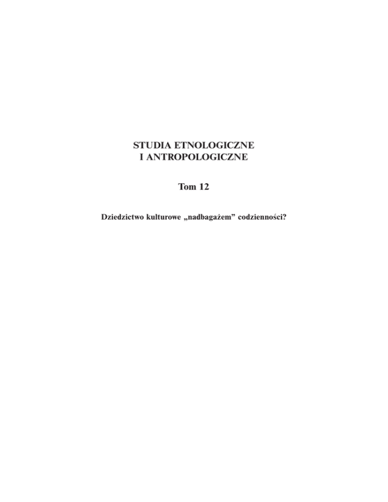 STUDIA ETNOLOGICZNE I ANTROPOLOGICZNE Tom 12