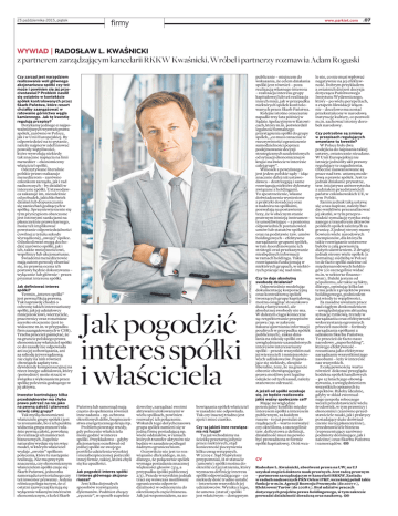 23 października 2015, piątek www.parkiet.com firmy .07 WYWIAD | RADOSŁAW L. KWAŚNICKI z partnerem zarządzającym kancelarii RKKW Kwaśnicki, Wróbel i partnerzy rozmawia Adam Roguski Czy zarząd jest narzędziem realizowania woli głównego akcjonariusza spółki czy też może i powinien się jej przeciwstawiać? Problem nasilił się ostatnio w kontekście spółek kontrolowanych przez Skarb Państwa, które resort chciałby zaangażować w ratowanie górnictwa węgla kamiennego. Jak tę kwestię regulują przepisy? Dotykamy jednego z najpoważniejszych wyzwań prawa spółek, zarówno w Polsce, jak i w Unii Europejskiej. By odpowiedzieć na to pytanie, należy najpierw zdefiniować powody wątpliwości, które wywołują niekiedy tak znaczne napięcia na linii menedżer – ekonomiczny właściciel spółki. Odczytywane literalnie polskie prawo nakazuje menedżerom – zarówno członkom zarządu, jak i rad nadzorczych – by działali w interesie spółki. Ustawodawca zakazuje im, niezależnie od pobudek, jakichkolwiek działań lub dopuszczania się zaniechań godzących w spółkę. Sprzeniewierzenie się tym pryncypiom obarczone jest istotnymi sankcjami na płaszczyźnie prawa karnego, może też implikować powstanie odpowiedzialności cywilnej z tytułu szkody wyrządzonej „swojej” spółce. Odszkodowań mogą dochodzić zarówno spółki, jak i ich, także mniejszościowi, wspólnicy lub akcjonariusze. Świadomi menedżerowie mają zatem powody obawiać się, że prawna ocena ich postawy będzie dokonywana – wyłącznie lub głównie – przez pryzmat interesu spółki. Inwestor kontrolujący kilka przedsiębiorstw ma chyba prawo patrzeć na nie jako na pewną całość i planować rozwój całej grupy? Tak myślą ekonomiczni właściciele grupy spółek i jest to zrozumiałe, bo z ich punktu widzenia grupa stanowi właśnie pewną całość, powołaną do realizacji ich zamierzeń biznesowych. Zupełnie naturalny wydaje się im więc model, w którym właściciel wydaje „swoim” spółkom polecenia, które te następnie realizują. Nie ma przy tym znaczenia, czy ekonomicznym właścicielem spółki czuje się Skarb Państwa, jednostka samorządu terytorialnego czy też inwestor prywatny. Jedyna różnica polega na tym, że ci ostatni zazwyczaj kierują się wyłącznie własnym interesem ekonomicznym, z kolei Skarb FOT. MAT. PRASOWE Jak definiować interes spółki? Termin „interes spółki” jest pewną fikcją prawną. Tak naprawdę chodzi o ochronę takich interesariuszy spółki, jak jej udziałowcy mniejszościowi, wierzyciele, pracownicy oraz rozumiane szeroko otoczenie (jest to widoczne m.in. w przypadku firm zaangażowanych w CSR). Trzeba przecież pamiętać, że na gruncie polskiego prawa ekonomiczny właściciel spółki co do zasady nie odpowiada ani za jej zobowiązania, ani za szkodę jej wyrządzoną; nie ciąży na nim również obowiązek zapłaty tzw. dywidendy kompensacyjnej na rzecz innego udziałowca, który (pośrednio) może stracić w związku z wykonaniem przez spółkę polecenia godzącego w jej aktywa. publicznie – miejscem do wskazania, że celem działania spółki jest również – poza realizacją własnego interesu – realizacja interesu grupy kapitałowej lub też realizacja innych misji, jak w przypadku niektórych spółek kontrolowanych przez Skarb Państwa. Kolejne istotne orzeczenie zapadło trzy lata później w Sądzie Apelacyjnym w Katowicach, który m.in. potwierdził legalność formalnego przystąpienia spółki do grupy spółek, „co musi oznaczać w rzeczywistości ograniczenie samodzielności poprzez podejmowanie decyzji strategicznych uzależnionych od sytuacji ekonomicznej w kraju i na świecie w interesie całej grupy”. Wniosek z powyższego jest jeden: polskie sądy – idąc znacznie dalej niż ustawodawca – dostrzegają i same rozwiązują niektóre dylematy związane z holdingami. To spostrzeżenie, własne doświadczenia wyniesione z praktyki doradczej oraz z nadzoru na spółkami, pozwalają na postawienie tezy, że w obecnym stanie prawnym istnieją instrumenty umożliwiające – z poziomu odpowiednich postanowień umów lub statutów spółek oraz na podstawie tzw. umów holdingowych – efektywne zarządzanie grupami spółek, w tym koordynowanie ich strategii oraz przekazywanie niezbędnych informacji w ramach holdingu. Takie rozwiązania funkcjonują w niektórych grupach, w niektórych pracuje się nad nimi. Jak pogodzić interes spółki i właściciela Państwa lub samorząd mają często do spełnienia również inne zadania – np. ochrona określonych dóbr, bezpieczeństwa energetycznego kraju itp. Problem powstaje wtedy, gdy polecenie właściciela może godzić w interes spółki. Przykładowo – gdyby akcjonariusz oczekiwał od jednej spółki ze swojego portfela udzielenia wysokiej i niezabezpieczonej pożyczki innej firmie, takiej, która chyli się ku upadłości. Jak pogodzić interes spółki i interes głównego akcjonariusza? Jest kilka dojrzałych sposobów rozwiązania dylematów. Podmiot chcący „ręcznie”, w sposób zupełnie dowolny, zarządzać swoimi aktywami ulokowanymi w wielu spółkach, powinien rozważyć ich połączenie. Wskutek tego dotychczasowa grupa spółek zamieni się w jedną firmę posiadającą np. wiele oddziałów, w ramach których transfer aktywów nie będzie w zasadzie podlegał żadnym ograniczeniom. Oczywiście nie jest to rozwiązanie dla każdego, m.in. dlatego, że połączenie spółek wymaga posiadania znacznej większości głosów (3/4, a przypadku spółki publicznej 2/3). Przede wszystkim jednak traci się wówczas możliwość ograniczenia odpowiedzialności w odniesieniu do określonych części biznesu. Jak już wspomniałem, za zo- bowiązania spółek właściciel w zasadzie nie odpowiada. Tak czy inaczej trudno jest zjeść i mieć ciastko. Czy są jakieś inne rozwiązania niż fuzja? Tu już wchodzimy na ścieżkę pr