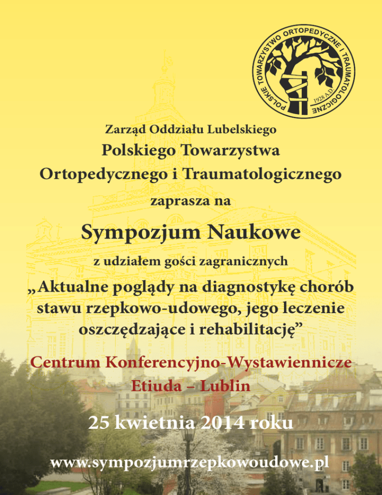 Zarząd Oddziału Lubelskiego Polskiego Towarzystwa Ortopedycznego i Traumatologicznego zaprasza na Sympozjum Naukowe z udziałem gości zagranicznych „Aktualne poglądy na diagnostykę chorób stawu rzepkowo-udowego, jego leczenie oszczędzające i rehabilitację” Centrum Konferencyjno-Wystawiennicze Etiuda – Lublin 25 kwietnia 2014 roku www.sympozjumrzepkowoudowe.pl Szanowni Państwo, serdecznie zapraszamy Państwa do udziału w spotkaniu naukowo-szkoleniowym poświęconym diagnostyce i leczeniu oszczędzającemu chorób stawu rzepkowo-udowego. Spotkanie to organizujemy wspólnie z oddziałem podkarpackim PTOiTr oraz oddziałem lubelskim Polskiego Towarzystwa Rehabilitacji. Znaczny postęp, który przyniosły badania biomechaniczne i rozwój technik obrazowania stawu rzepkowo-udowego, przełożył się na zmiany w algorytmach diagnostycznych i terapeutycznych. Stosowane powszechnie skróty myślowe, takie jak „chonodromalacja” i „zwichnięcie rzepki”, stały się nieaktualne. Okazały się one jedynie pewnymi aspektami znacznie szerszego problemu. Nasza wiedza w tym zakresie wymaga stałej aktualizacji, a techniki operacyjne – mody kacji lub wręcz całkowitych zmian. Ogromne, często niezrozumiane i niedoceniane znaczenie, ma postępowanie rehabilitacyjne. Właściwe połączenie obu dziedzin – ortopedii i rehabilitacji – nadal napotyka trudności, ale tylko takie współdziałanie stwarza szanse uzyskania skutecznego efektu leczniczego. Przy wyborze tematów organizatorzy starali się przedstawić zagadnienie kompleksowo, poczynając od biomechaniki, poprzez obrazowanie i leczenie operacyjne chorób stawu rzepkowo-udowego. Zaproszeni wykładowcy, zarówno zagraniczni, jak i krajowi, to eksperci od wielu lat zajmujący się tą problematyką. Serdecznie zapraszamy do Lublina 25 kwietnia 2014 roku. Z poważaniem Dr hab. n. med. Jan Blacha Prof. UR dr hab. n. med. Sławomir Snela Dr n. med. Jacek Walawski Dr n. med. Rafał Sapuła Program Sympozjum 25 kwietnia 2014 r. 9.00 Rejestracja uczestników, powitalna kawa 10.00–10.05 Rozpoczęcie Sympozjum – dr hab. n. med. Jan Blacha 10.05–10.20 Anatomia i biomechanika, epidemiologia – dr n. med. Jacek Walawski 10.20–10.35 Patologia rozwojowa stawu rzepkowo-udowego u dzieci i młodzieży – prof. UR dr hab. n. med. Sławomir Snela 10.35–10.50 Diagnostyka kliniczna i radiologiczna – dr n. med. Wojciech Krzyżanowski 10.50–11.05 Leczenie biologiczne uszkodzeń powierzchni chrzęstnych – dr n. med. Konrad Słynarski 11.05–11.25 Przerwa na kawę 11.25–11.40 Zespoły bólowe przedniego przedziału kolana – dr n. med. Jacek Walawski 11.40–11.55 Rehabilitacja z punktu widzenia lekarza – dr n. med. Rafał Sapuła 11.55–12.10 Kinesiology taping – mgr Tomasz Senderek 12.10–12.25 Niestabilność stawu rzepkowo-udowego – prof. Elvire Servien 12.25–12.40 Leczenie niestabilności – rozwój techniki – dr Florian Dirisamer 12.40–13.00 Przerwa na kawę 13.00–13.15 Leczenie niestabilności – „menu a la carte” – prof. Elvire Servien 13.15–13.30 Pięcioletnie wyniki własne MPFL – dr n. med. Tomasz Wnuk 13.30–13.45 Trochleoplastyka – dr Florian Dirisamer 13.45–14.00 Powikłania leczenia operacyjnego – dr n. med. Andrzej Solecki 14.00 Zakończenie Sympozjum INFORMACJE OGÓLNE Miejsce Centrum Konferencyjno-Wystawiennicze Etiuda ul. Nałęczowska, Szerokie 123 20-050 Lublin Organizatorzy Oddział Lubelski PTOiTr Prezes – dr hab. n. med. Jan Blacha dr n. med. Jacek Walawski Oddział Podkarpacki PTOiTr Prezes – lek med. Rajmund Cieślicki Oddział Lubelski Polskiego Towarzystwa Rehabilitacji Prezes – dr n. med. Rafał Sapuła Koszt udziału w Sympozjum Dla członków PTOiTr oraz PTReh udział w Sympozjum jest bezpłatny. Aby zgłosić udział w Sympozjum, należy wypełnić formularz rejestracyjny dostępny na stronie www.sympozjumrzepkowoudowe.pl. Kontakt w sprawach naukowych KLINIKA ORTOPEDII I TRAUMATOLOGII ul. Jaczewskiego 8, 20-954 Lublin tel. 81 72-44-510, faks 81 72-44-511 e-mail: [email protected] Kontakt ze sponsorami i wystawcami Medisfera Marcin Zabawa ul. Kraszewskiego 75C/7, 05-400 Otwock tel. 502 646 723, e-mail: [email protected] www.medisfera.pl