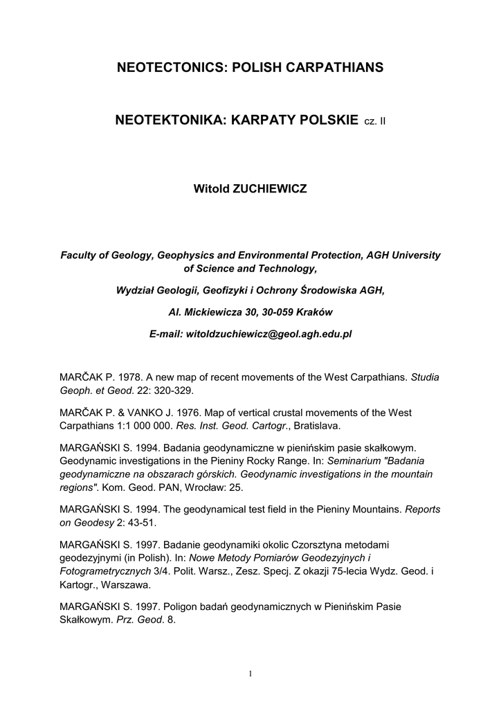 POLISH CARPATHIANS NEOTEKTONIKA: KARPATY
